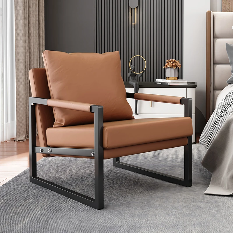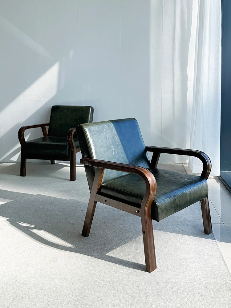 レトロなデザインのホテル休憩エリア用オフィスデスク&チェアセット!省スペースで小型住宅にも最適な、実木製のシングルレザーソファチェア。快適な時間をお過ごしください!