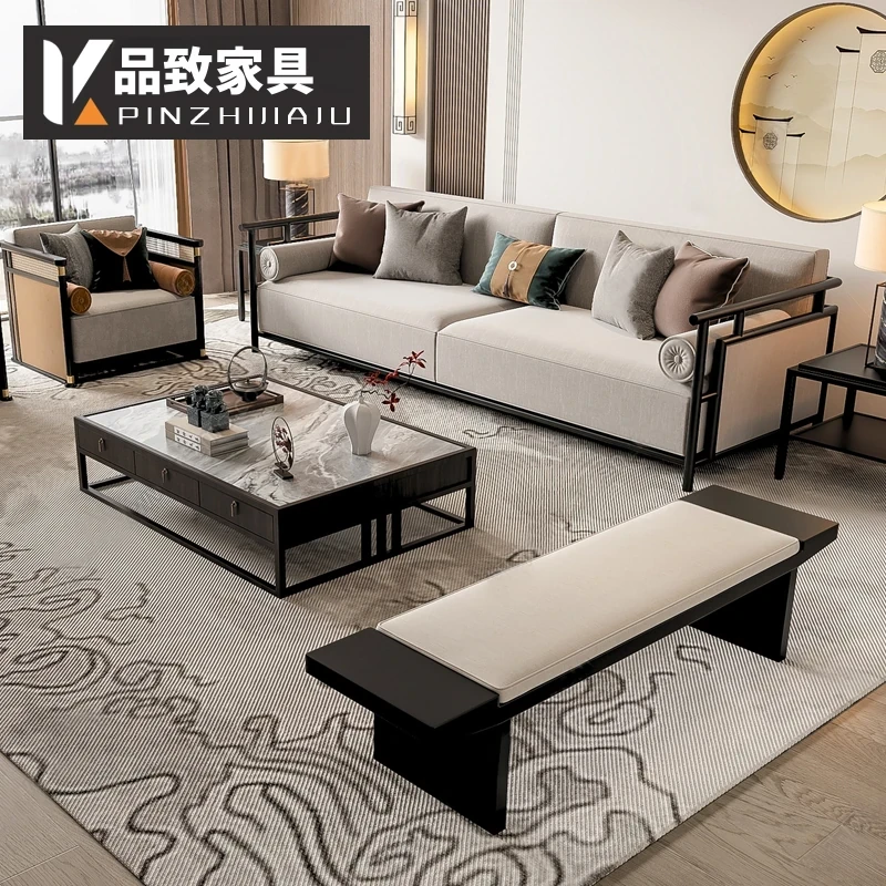 新中式スタイルの無垢材ソファセット - モダンでシンプルな禅の雰囲気を持つリビングルーム用、別荘や接待用に最適なホテル家具のサンプルルームにも最適です。