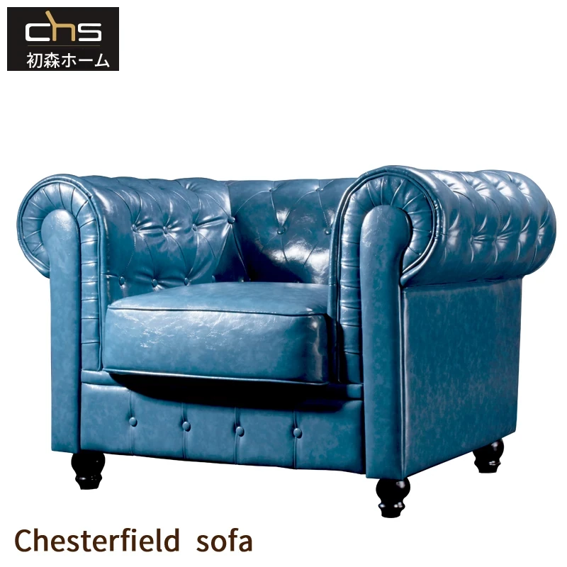 初森家具のチェスターフィールドソファ - シンプルでモダンな本革リラックスソファ、上質なデザインでおしゃれな空間を演出!