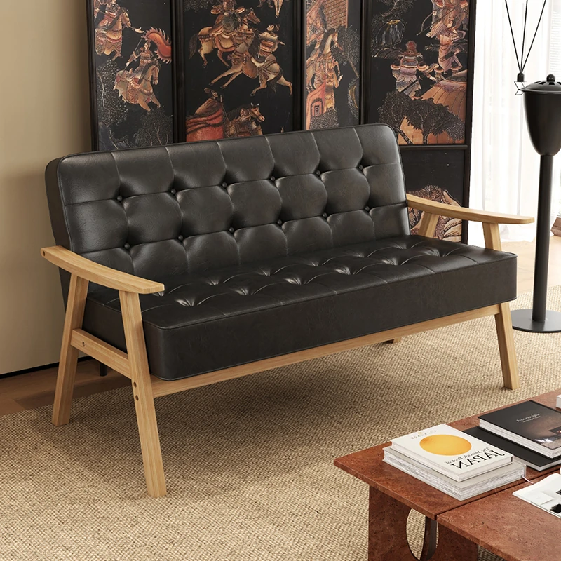 和風レトロな無垢材と合皮のコンパクトソファ - 二人掛け・三人掛け、狭いリビングやアパートに最適!シンプルでおしゃれな一人掛けソファ椅子。あなたの空間にぴったりのスタイルを!