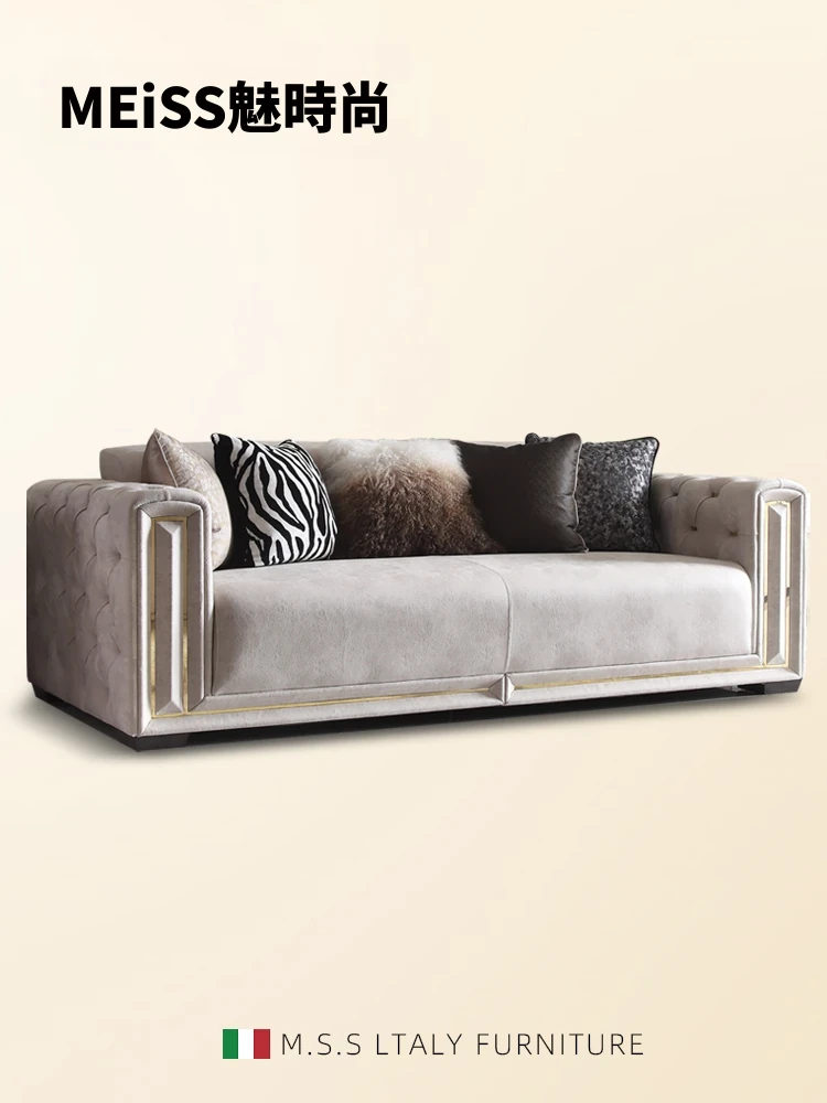 魅力溢れるExtetaオリジナルミニマル軽奢高級大規模別荘用本革ソファ - アメリカンスタイルのボタン付きソファで優雅なリビング空間を演出!