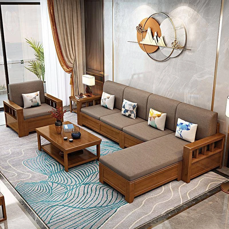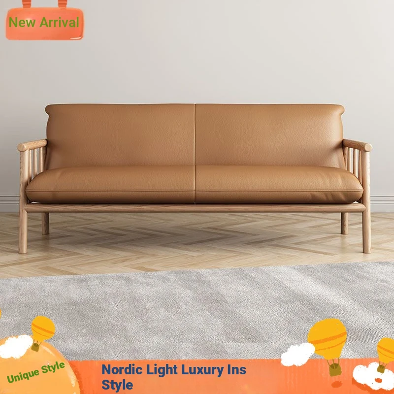 LS-908 Modern Minimalist Solid Wood Sofa for Small Living Rooms - Stylish and Functional Storage Ottoman Included - Perfect for Contemporary Chinese Decor
