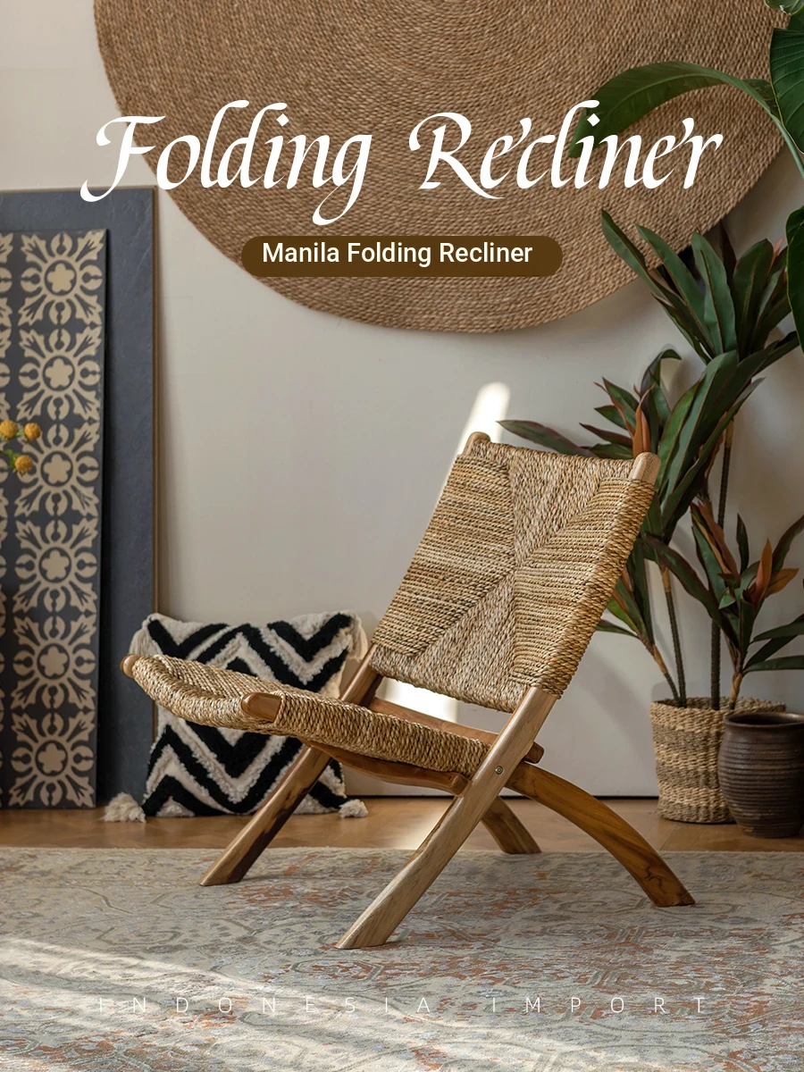 Original Imported Solid Wood Folding Lounge Chair - Vintage Style Leisure Chair for Home, Balcony & Guesthouses, Rattan-Style Sofa Chair, Perfect for Relaxing and Enjoying Outdoor Spaces.