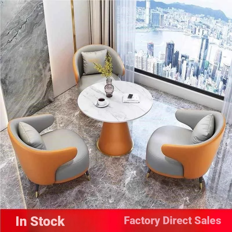 Stylish Modern Sales Office Negotiation Set: Round Table with Four Chairs for Client Meetings and Reception - Perfect for Elegant Discussions and Deal-Making