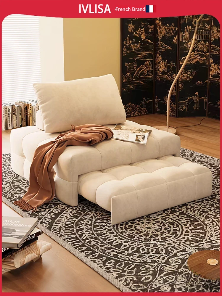 IVLISA French Luxury Lazy Sofa Bed - Versatile Lambswool & Genuine Leather Armchair, Perfect for Relaxation and Style