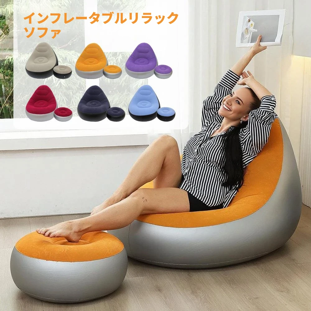 ポータブルS型エアソファー|一人用折りたたみ式・寝そべりラクラク!寝室やカップルの情趣に最適な快適なリクライニングチェアとして、どこでも使える便利さを実現!