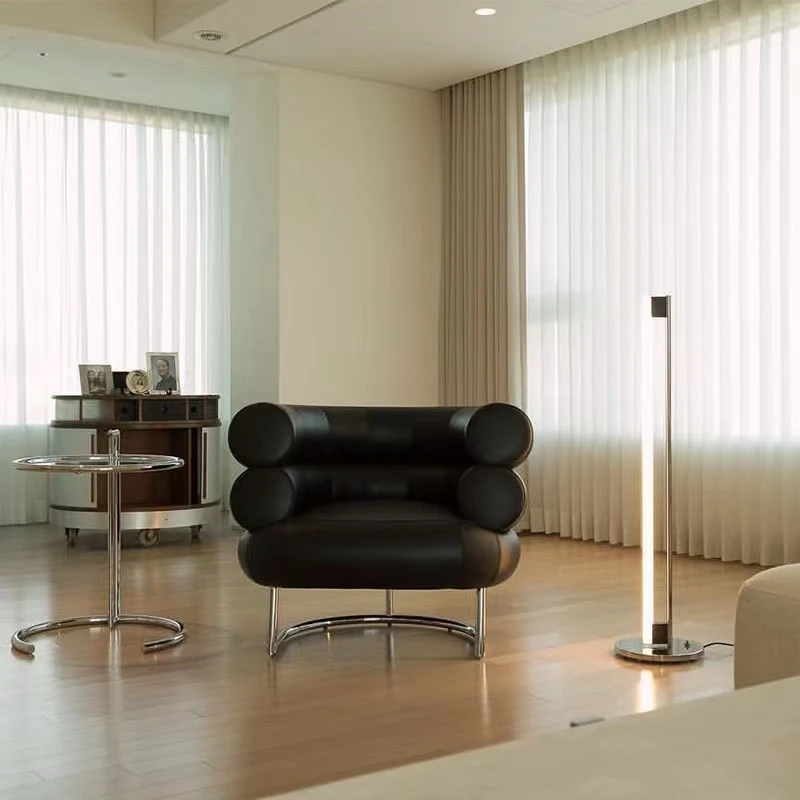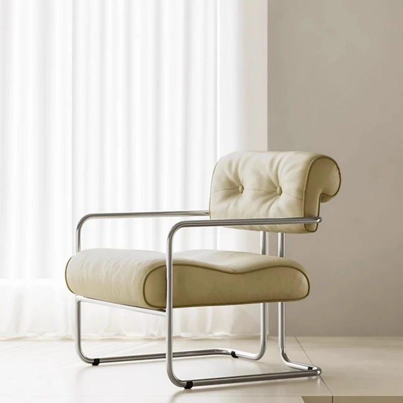 バウハウススタイルのデザイナーソファチェア - ステンレス製のミニマリスト一人掛け椅子。おしゃれなイタリアンデザインで、リビングルームに最適な快適なリラックス空間を提供します。