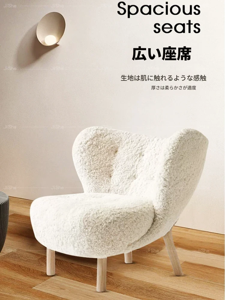 北欧スタイルのシープスキン一人掛けソファ|ヴィンテージクリーム色のリラックスチェア|デザイナーとインフルエンサーに人気の侘寂風デザイン|おしゃれで心地よいリビング空間を演出!