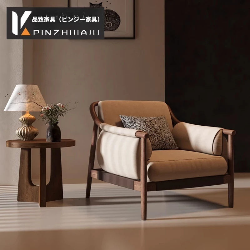 新中式デザインの無垢材ソファチェア - モダンでシンプルな客間やホテル、別荘、大広間、民宿に最適な家具。上質な座り心地で、洗練された空間を演出します。あなたのインテリアを格上げする一品!