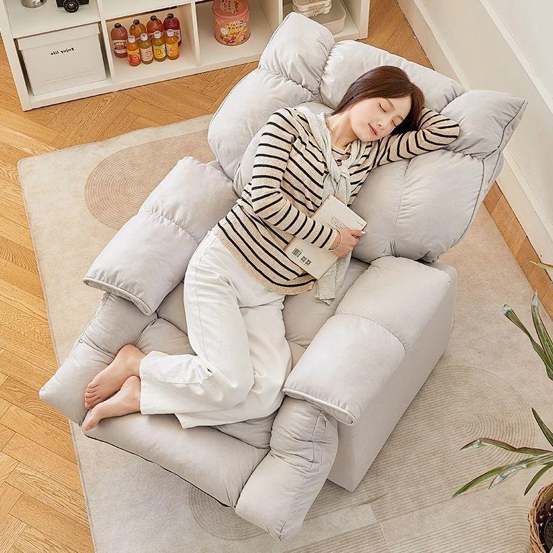 リラックスできる一人用ソファ!バルコニーにぴったりの lazy sofa、寝転びながらくつろげる!おしゃれなデザインで、寝室や学生寮にも最適な家庭用リラックスチェア。快適な背もたれ付きで、至福のひとときをお届けします!