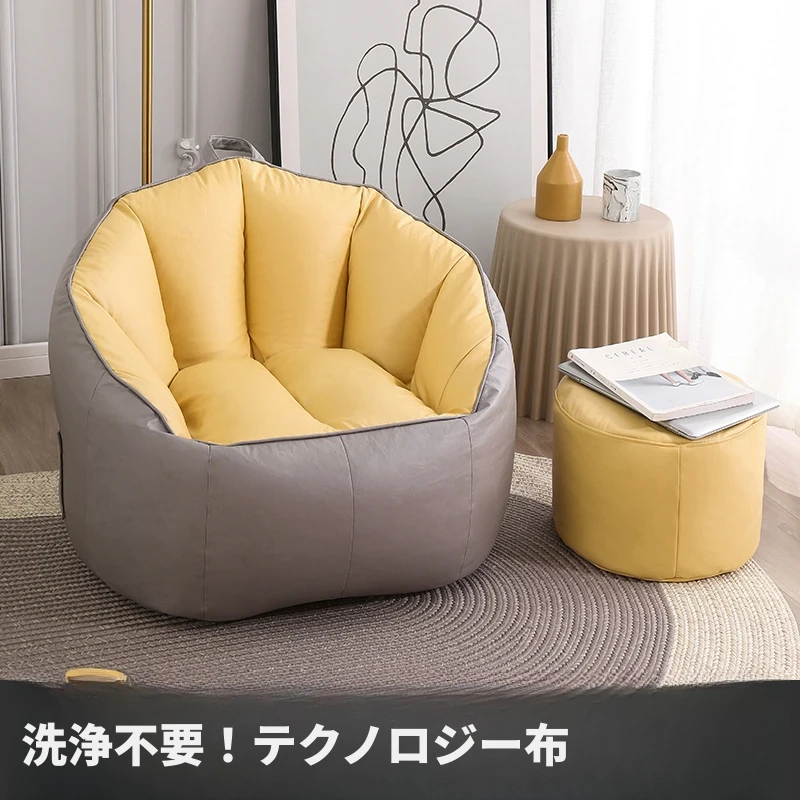 楽々ソファ!高弾性テクニカルファブリック使用の豆袋ソファ。居心地抜群で、寝室やタタミ、可愛いバルコニーにぴったりな小型の一人用リラックスチェア。あなたのリラックスタイムをアップグレード!