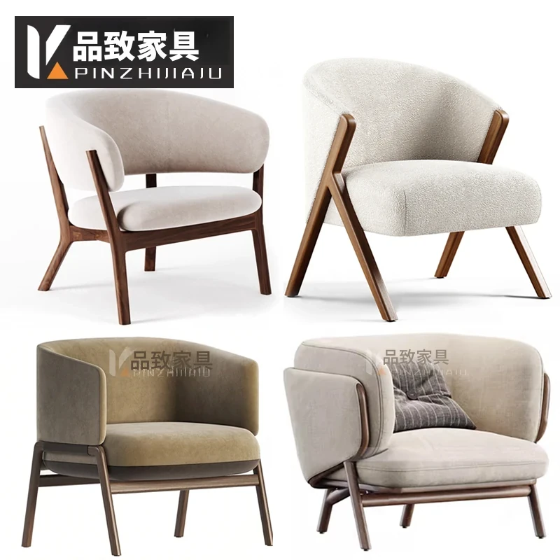 シンプルでモダンな無垢材ソファチェア|和風の軽やかなラグジュアリー|販売オフィスやホテル、クラブ、会議室にぴったりなリラックスチェア!