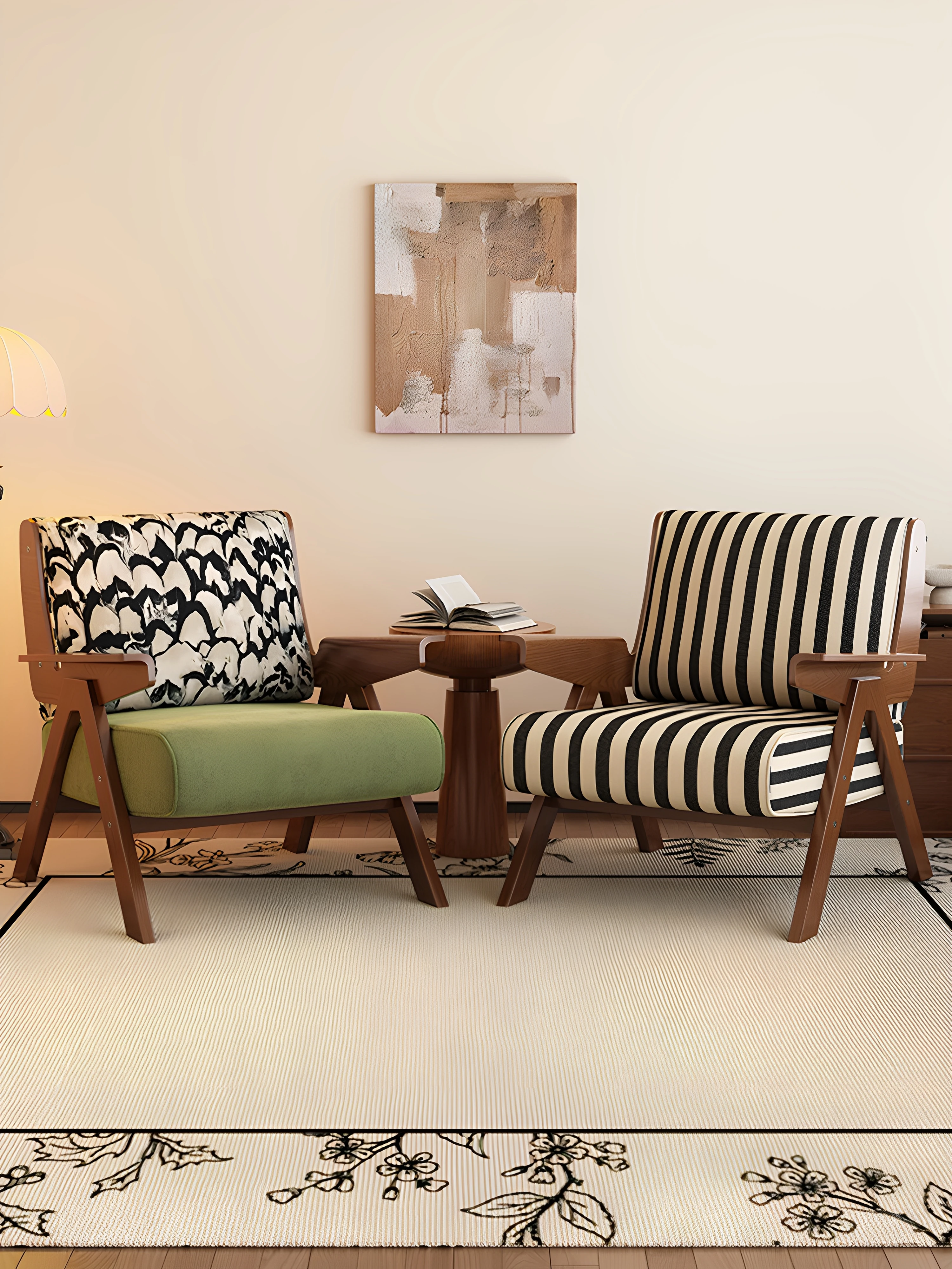 レトロなゼブラチェア 一人掛けソファ 人気の民宿やリビングに最適 おしゃれな古風デザインのデザイナーズ木製バックレストチェア くつろぎのひとときを提供します!