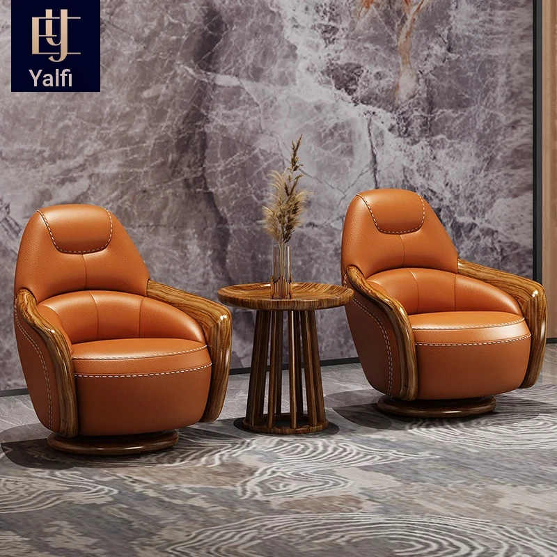 Elegant Blackwood Leisure Chair - Single Seat Negotiation Chair with Solid Wood and First Layer Cowhide, Luxury New Chinese Style Genuine Leather Sofa and Swivel Chair