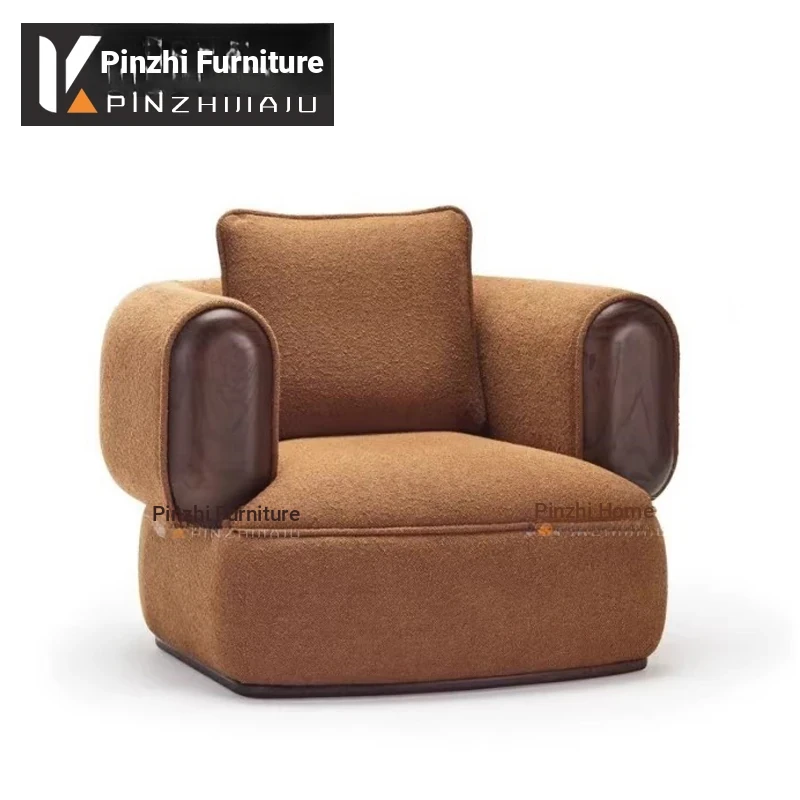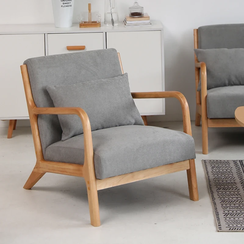 Modern Minimalist Single Sofa for Office, Hotel, and Bedroom - Stylish Solid Wood Lounge Chair for Balcony and Relaxation Area