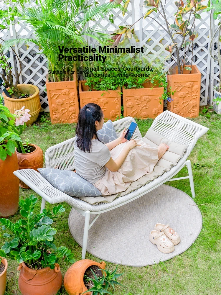 Purple Leaf Modern Minimalist Rattan Chaise Lounge Chair - Stylish Outdoor Sofa for Two, Perfect for Relaxation on Your Balcony or Patio