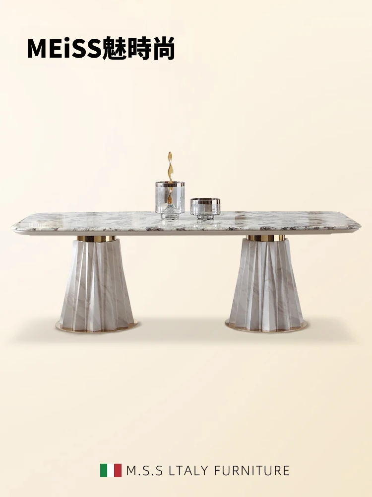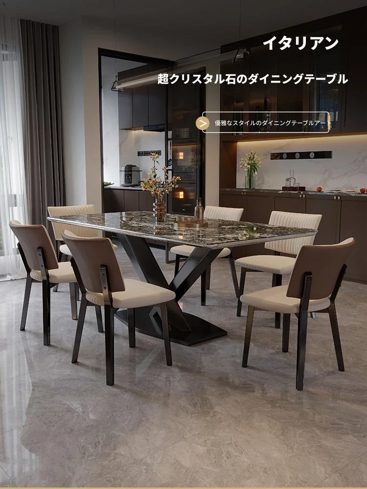 天然の大理石を使用した贅沢なダイニングテーブル&チェアセット!プラチナダイヤモンドの輝き、超晶石の耐久性、イタリアンデザインの洗練された四角形&長方形テーブルで、上質な食卓を演出します。