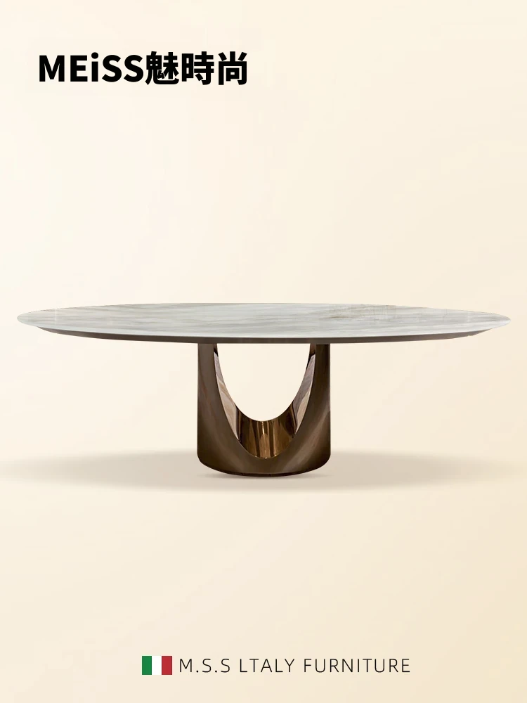 魅力的イタリアンデザイン、Cameron高級ミニマル大理石ダイニングテーブル - 大型ヴィラにぴったりのエレガントなオーバルテーブルで、洗練された食卓を演出!