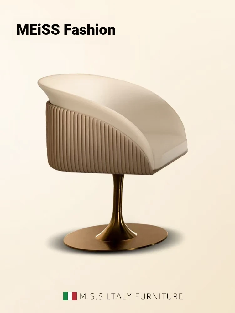 2025 New Italian Luxury Rotating Dining Chair - Premium Genuine Leather Makeup Chair for Bedroom - Designer Upholstered Reading Chair