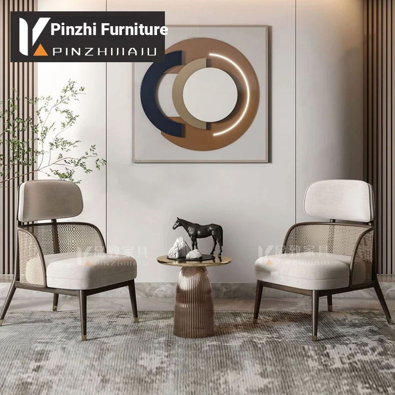 New Chinese Style Solid Wood Leisure Chair - Nordic Rattan-Woven Conversation Chair, Elegant Designer Piece for Hotels, Clubs, and Restaurant Private Dining Rooms