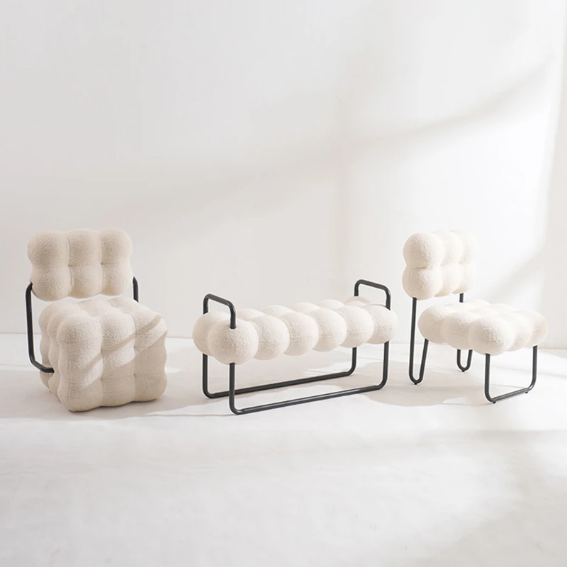 Designer Cream Cloud Sofa and Coffee Table Set with Bed-end Bench – Perfect for Reception, Meetings, and Stylish Entryway Seating for One or Two People.
