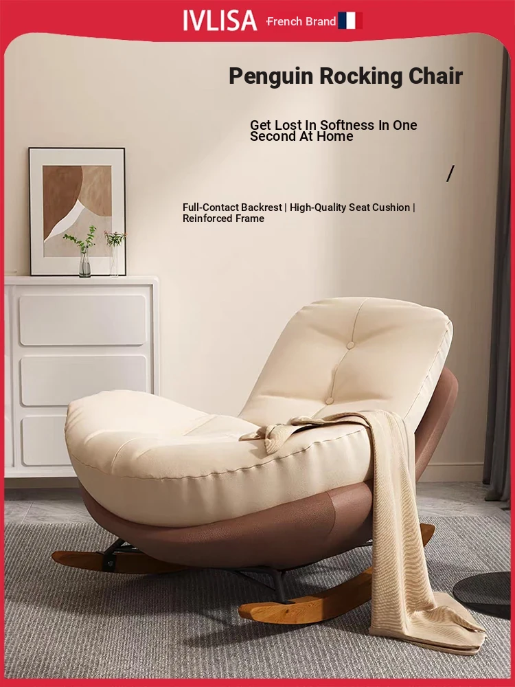 IVLISA French Luxury Lazy Penguin Rocking Chair – Comfortable Recliner for Adults, Perfect for Home and Balcony Relaxation