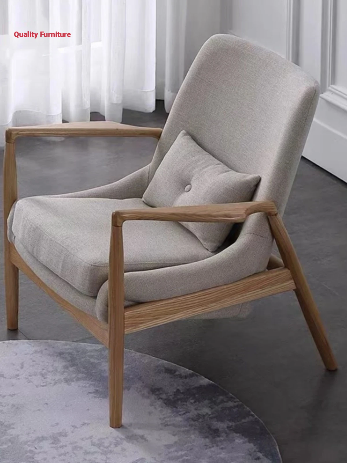 Nordic Ash Wood Single Sofa Chair - Minimalist Design for Hotels, Cafés, Reading Rooms, and Living Rooms - Perfect for Tea Shops with Cozy Upholstery