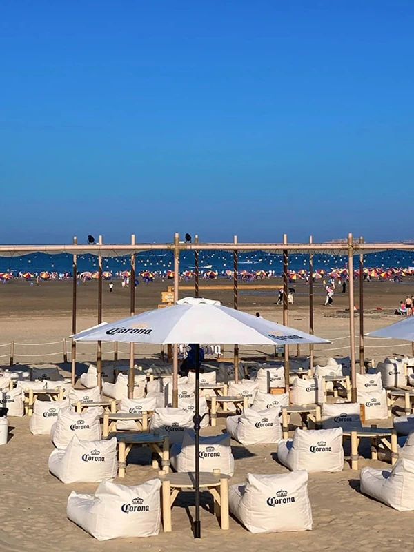 Outdoor Waterproof Sunshade Lazy Sofa Table Umbrella Set - Perfect for Beach Bars, Comfortable Bean Bags for Relaxing and Sleeping, Customizable with Logo Printing