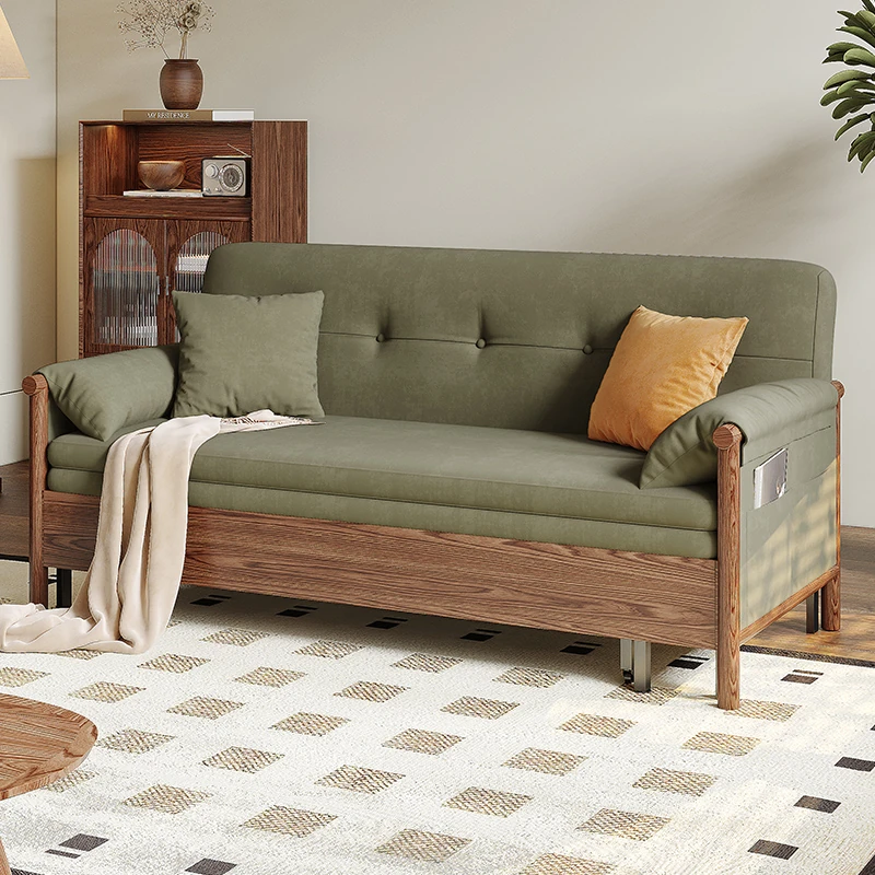 Muyu Vintage Solid Wood Folding Sofa Bed - Dual Use, Expandable, Space-Saving Design for Small Apartments - Stylish & Comfortable Two-Person Sofa in High-Tech Corduroy Fabric