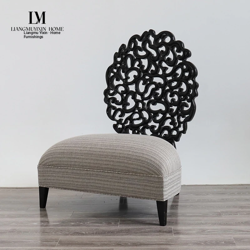 American Vintage Solid Wood Carved Lounge Chair - Elegant Fabric Single Sofa for Living Room, Ideal for Villas and Sample Rooms, Perfect for Relaxation