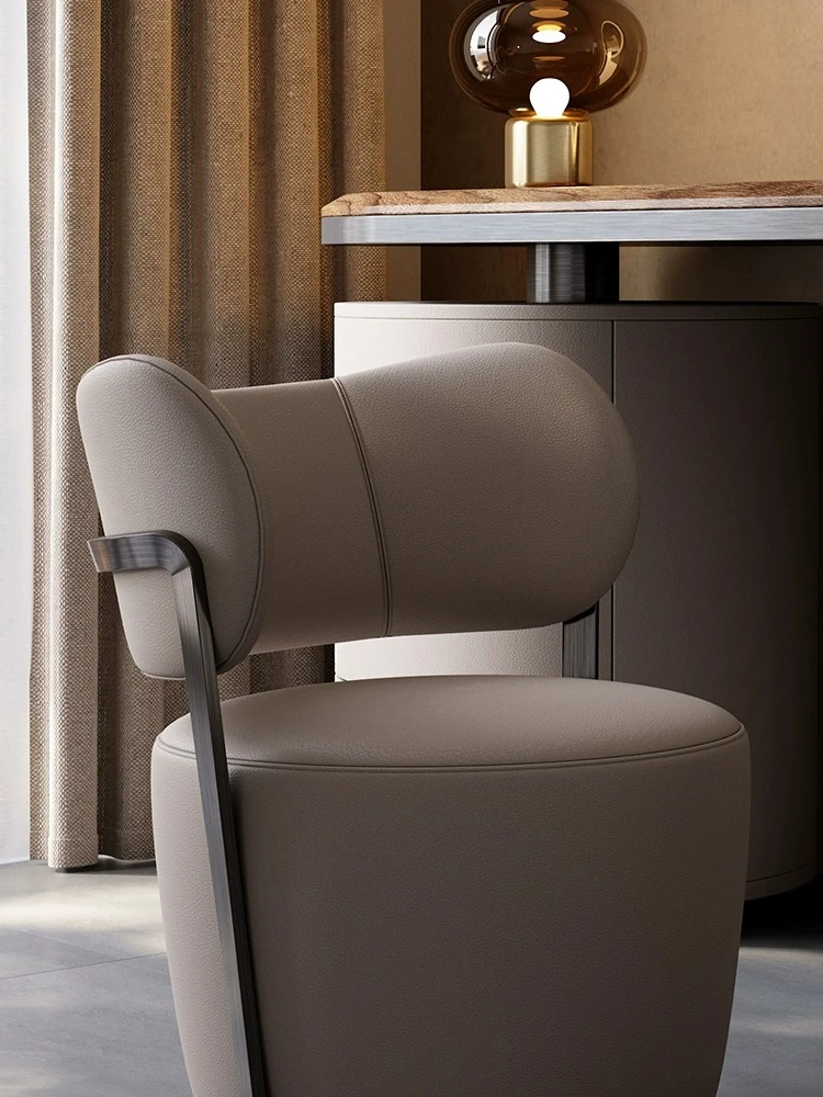 Italian Luxury Tea Room Leather Chairs with Backrest and Round Tea Table - 2024 New Collection of Stylish Seating for Cozy Gatherings