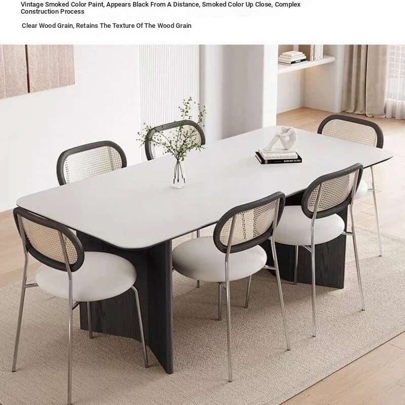 Modern Italian Minimalist Rectangular Dining Table Set - 2023 New High-End Light Luxury Home Furniture with Chairs, Perfect for Stylish Dining Experiences