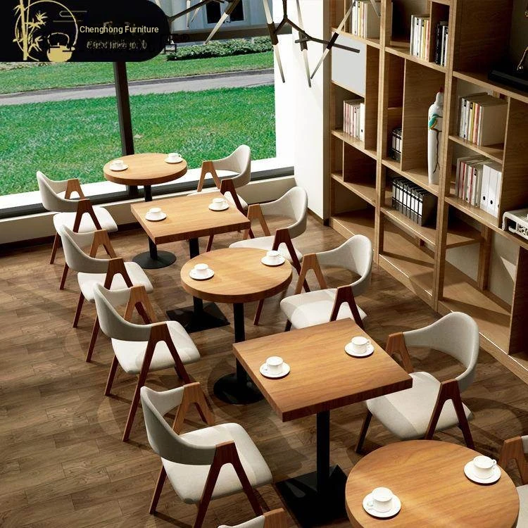 Stylish Nordic Solid Wood Dining Table and Chair Set - Perfect for Dessert Shops, Milk Tea Stores, and Cafés. Compact Square Table and Chairs for Commercial Use, Ideal for Creating a Cozy Atmosphere.