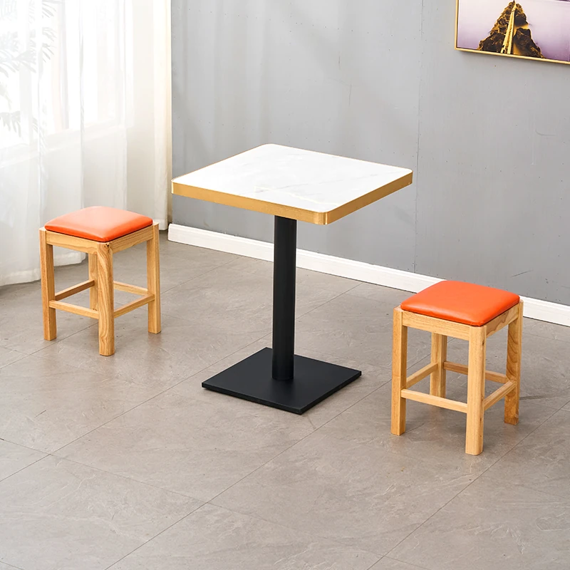 Modern Rectangular Rock Panel Dining Table Set for Small Italian Restaurants and Cafés - Stylish Fast Food Chairs and Tables for Milk Tea Shops