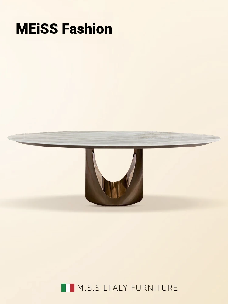 Cameron Italian High-End Minimalist Luxury Marble Dining Table - Elegant Oval Design for Spacious Villas