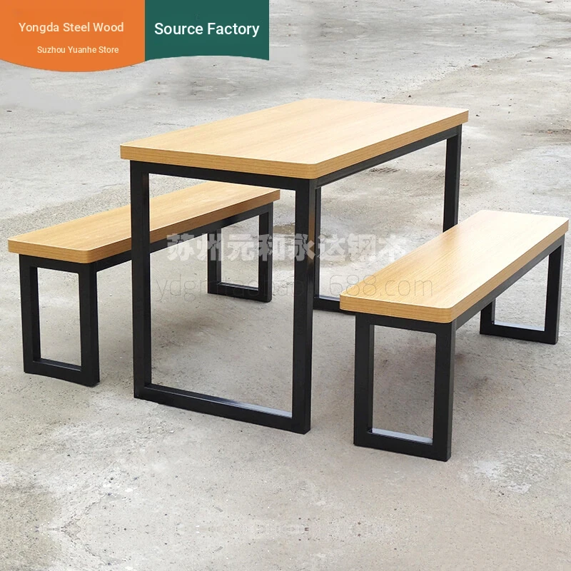 Minimalist Solid Wood Dining Set for Chinese Restaurants – Vintage Iron Long Table and Chair Combo for School Cafeterias