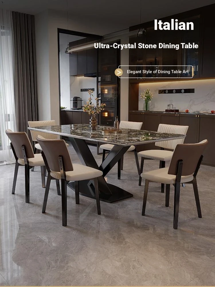 Natural Luxury Marble Dining Table Set - Platinum Diamond Super Crystal Stone Square Table & Rectangular Italian Microcrystalline Dining Table for Home Use