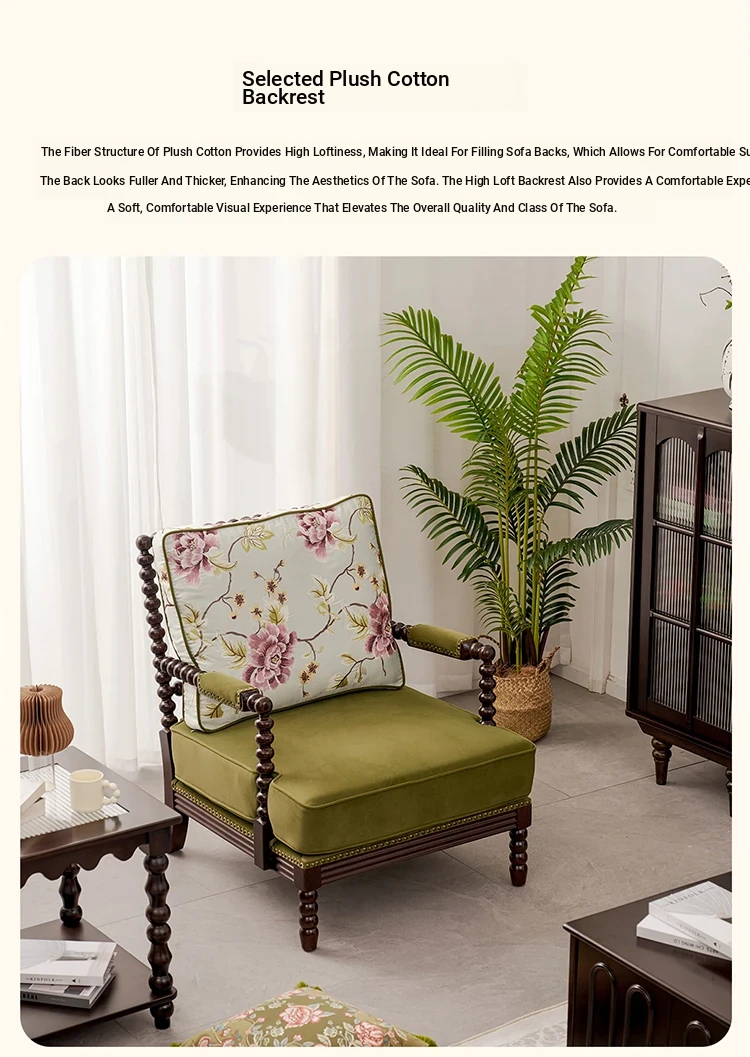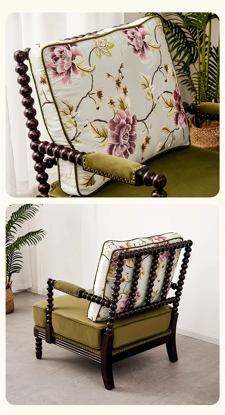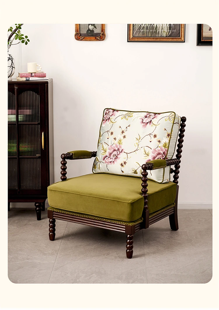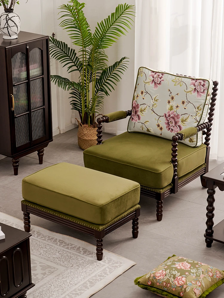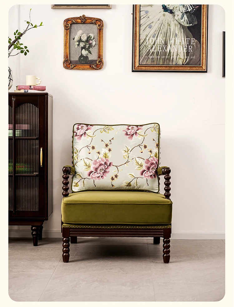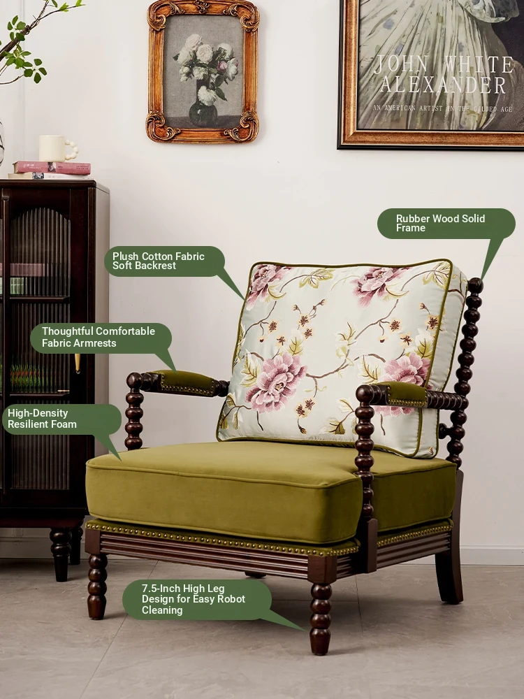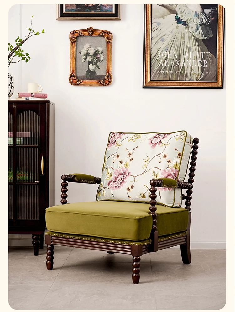 American Vintage Solid Wood Single Sofa Chair - French Mid-Century Style Upholstered Lounge Chair with Tiger Print for Living Room Relaxation
