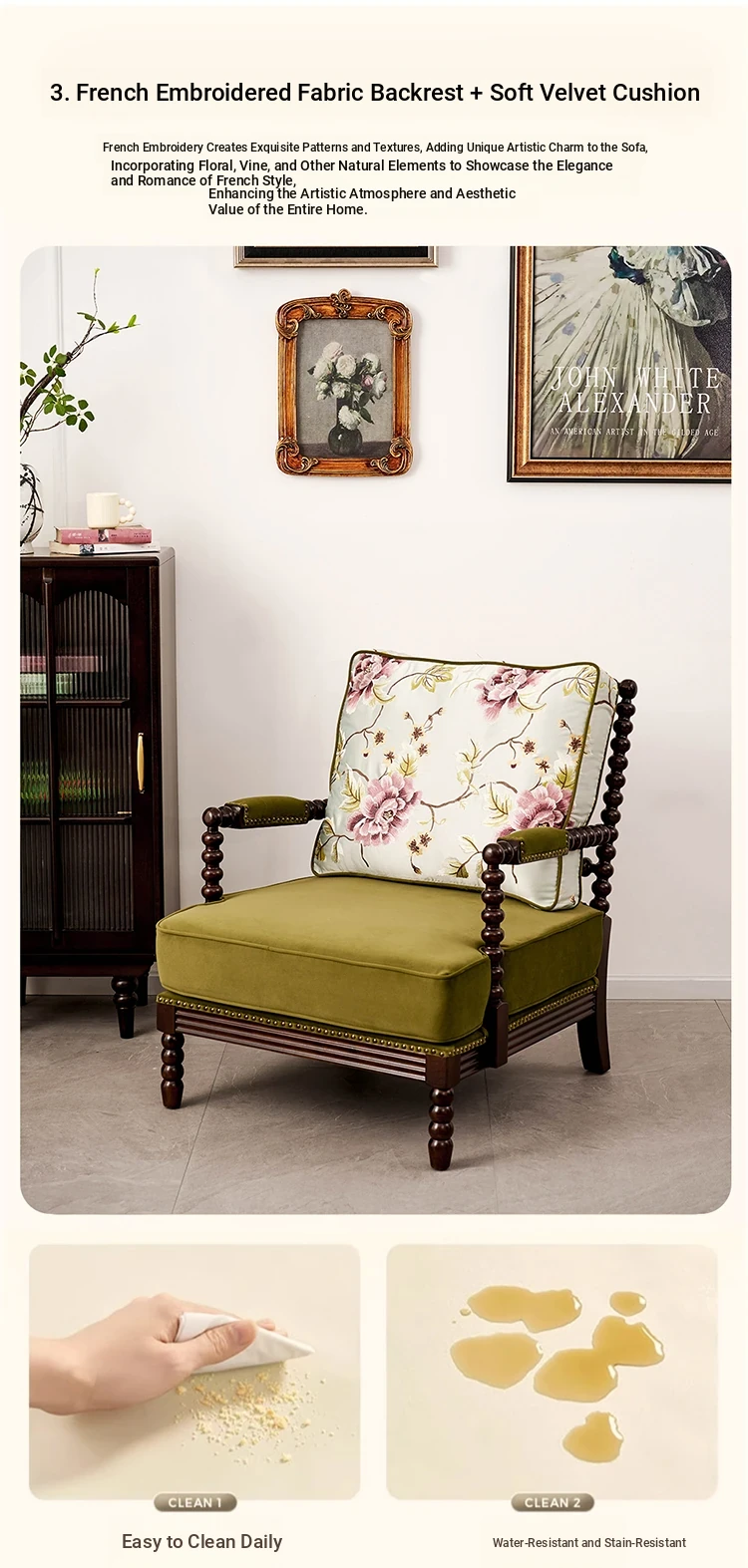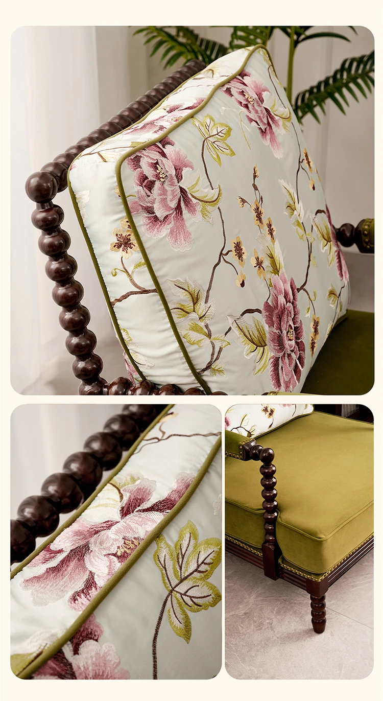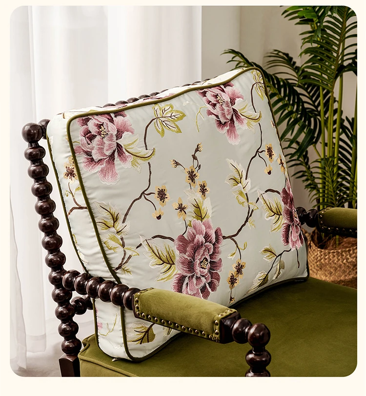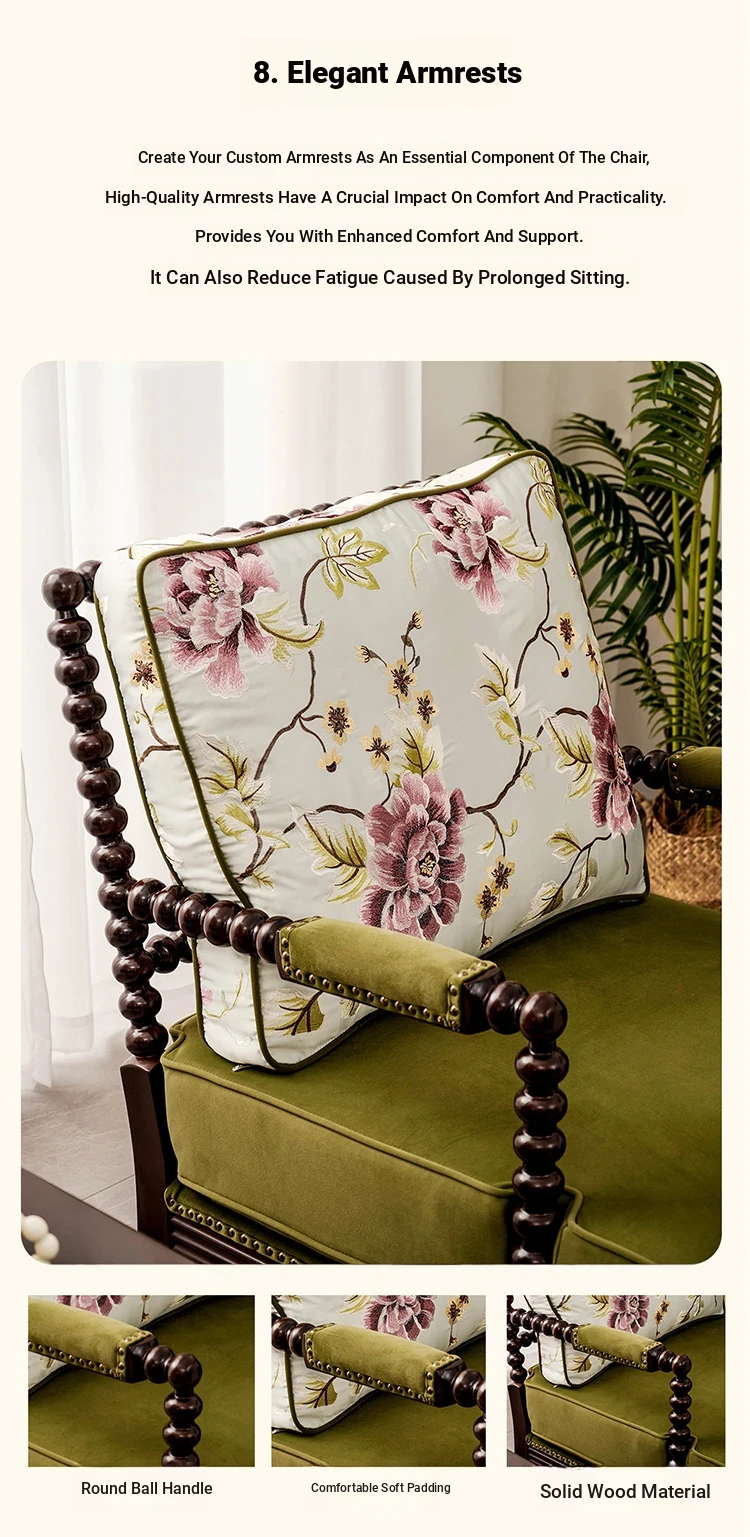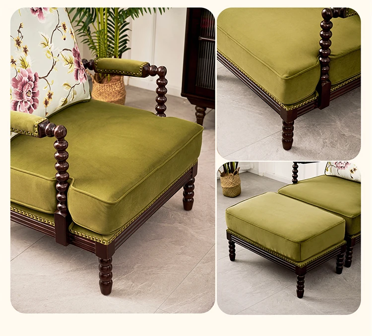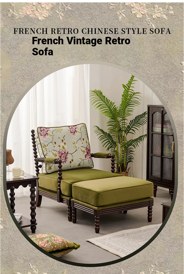 American Vintage Solid Wood Single Sofa Chair - French Mid-Century Style Upholstered Lounge Chair with Tiger Print for Living Room Relaxation