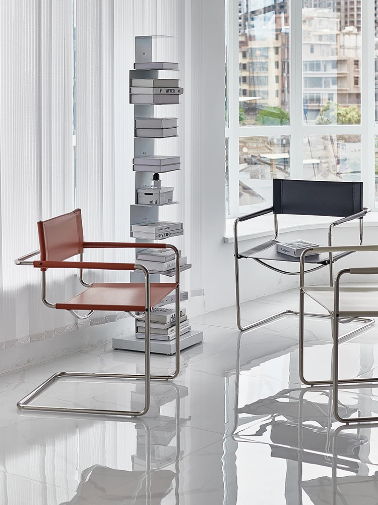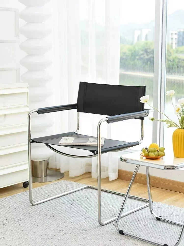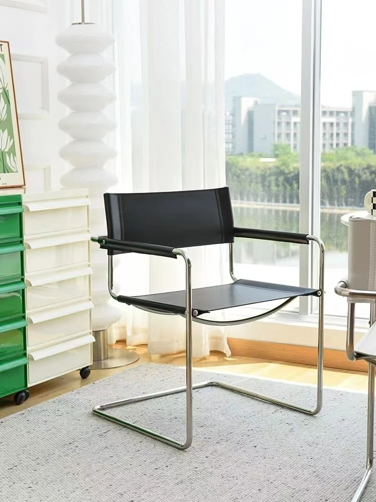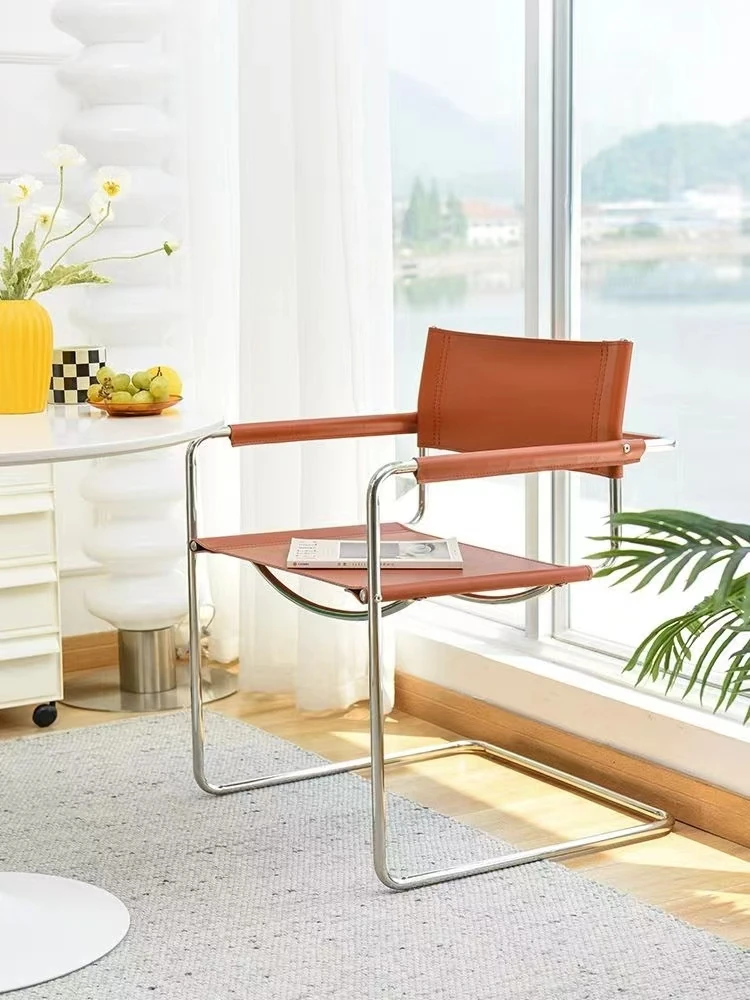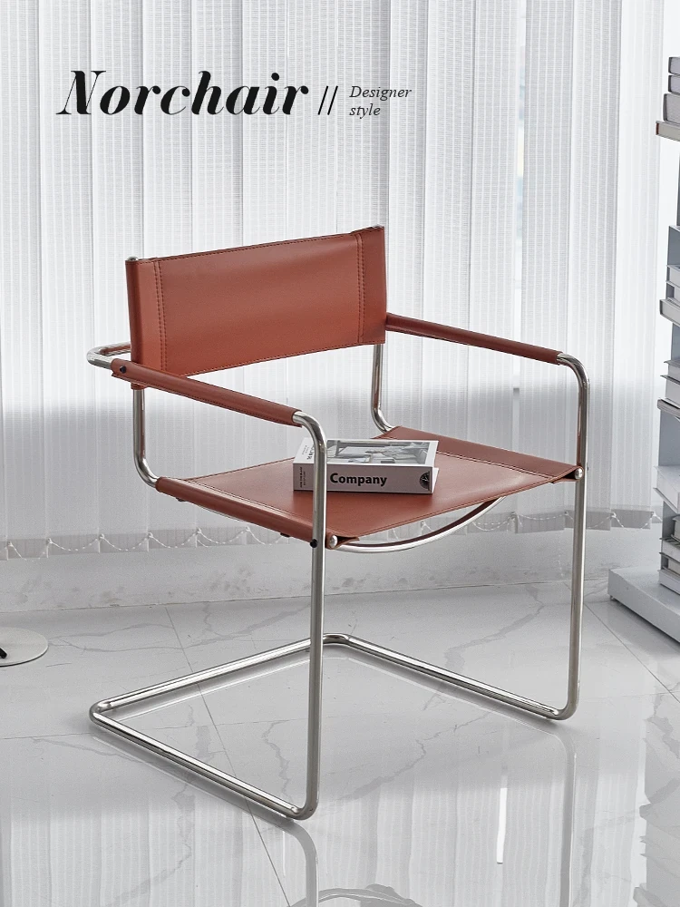 Bauhaus-Inspired Office Leisure Chair - Vintage Nordic Stainless Steel Dining Chair, Trendy Mr. Armchair in Ins Style