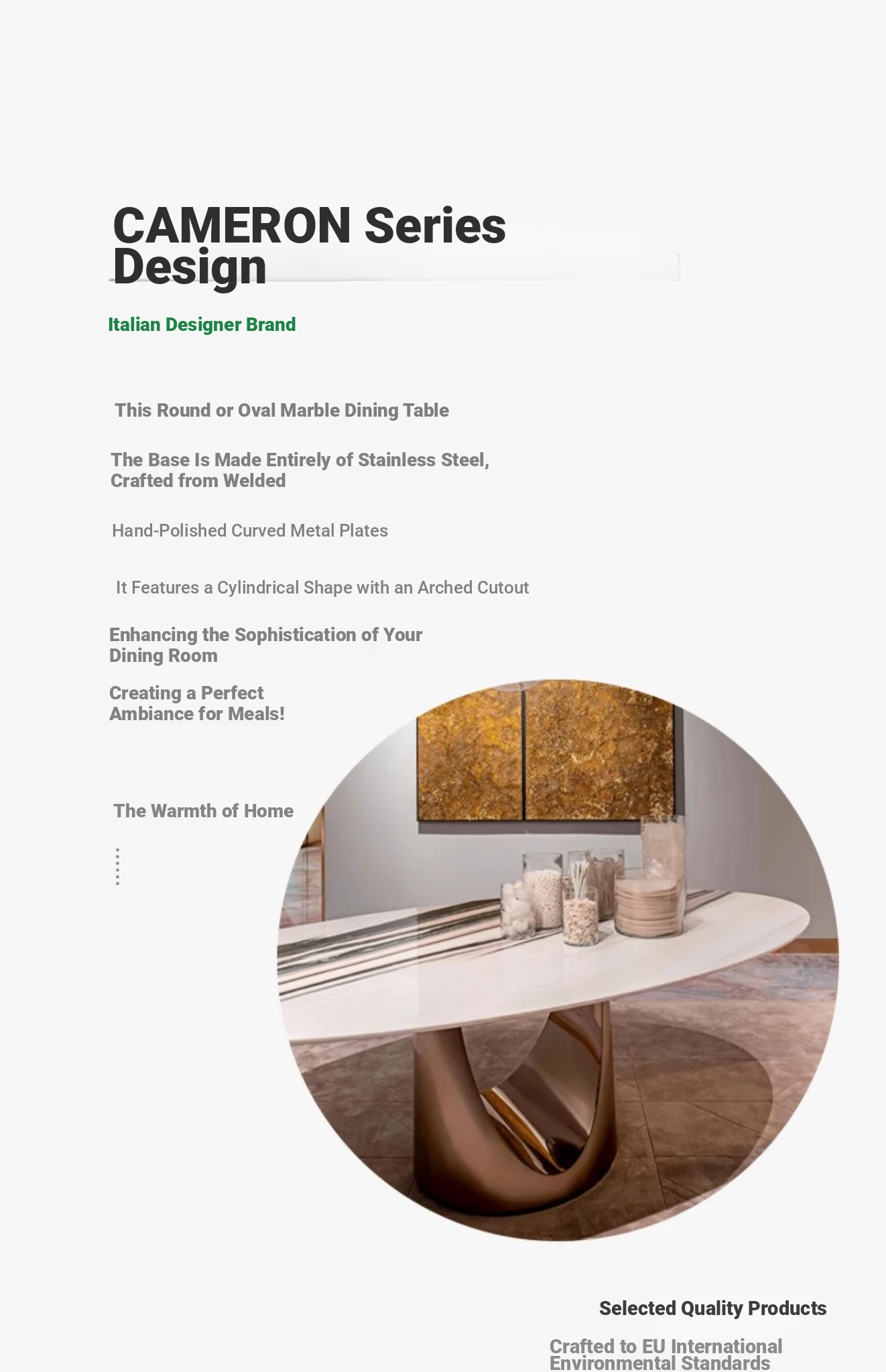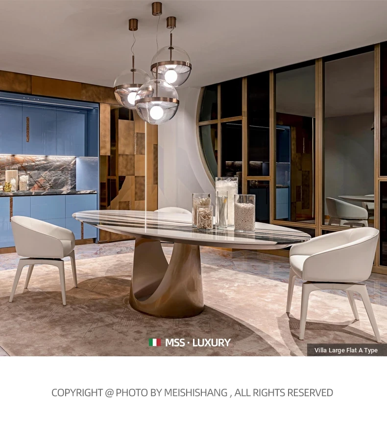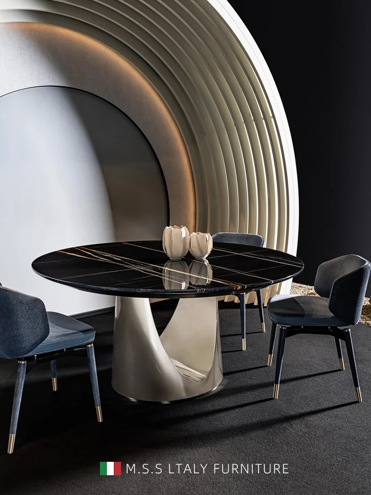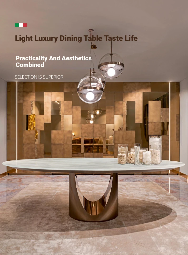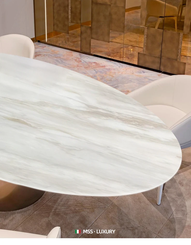 Cameron Italian High-End Minimalist Luxury Marble Dining Table - Elegant Oval Design for Spacious Villas