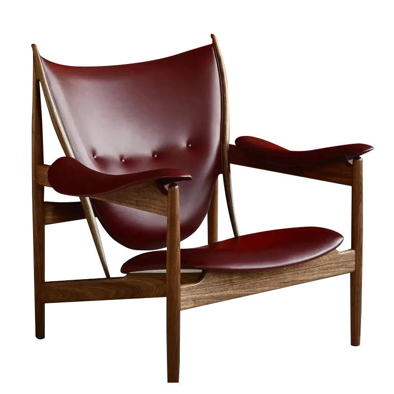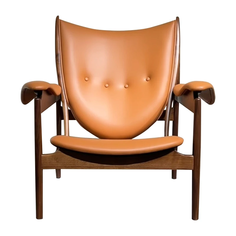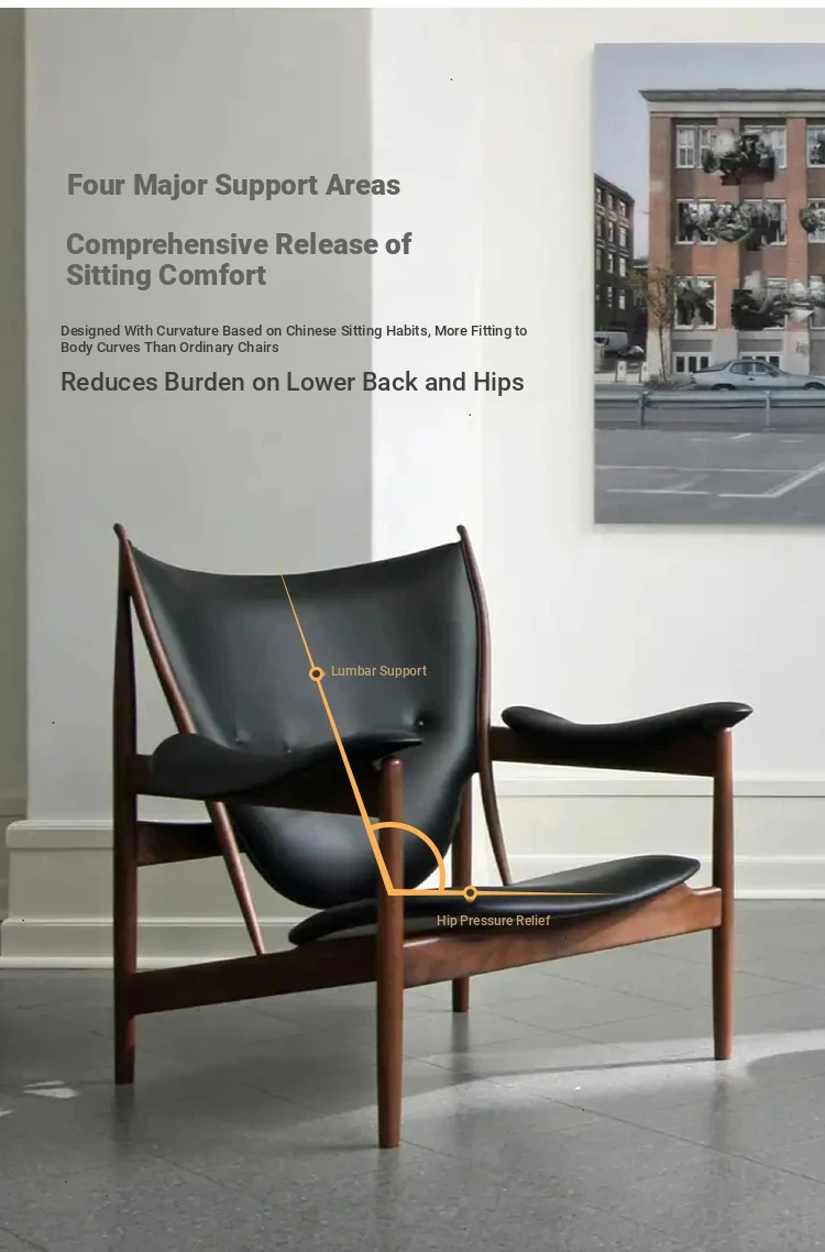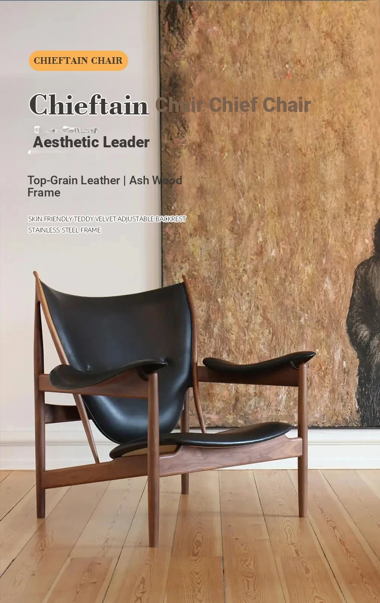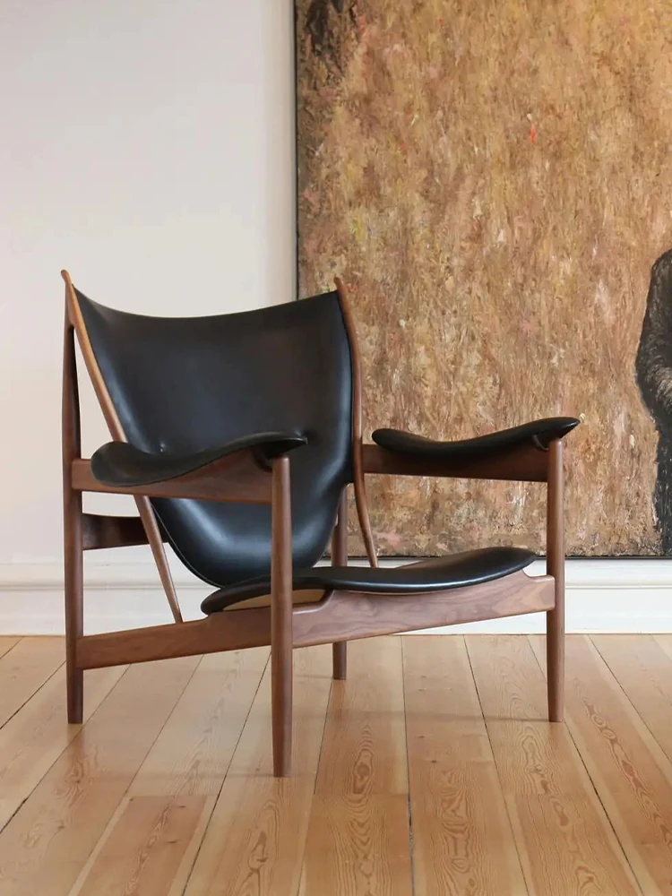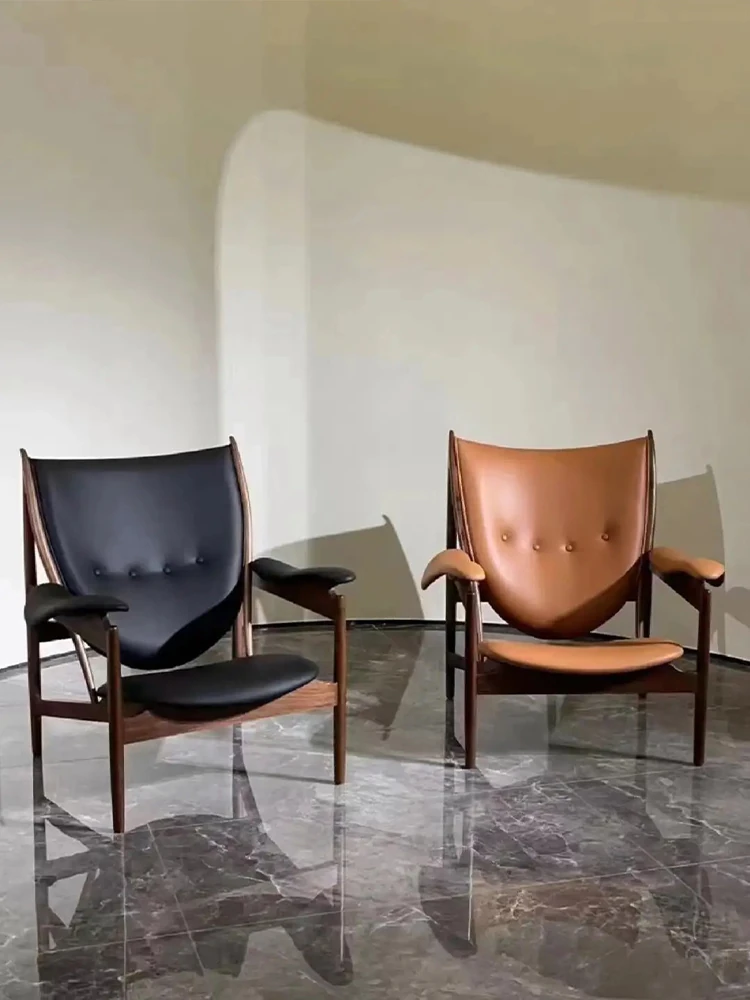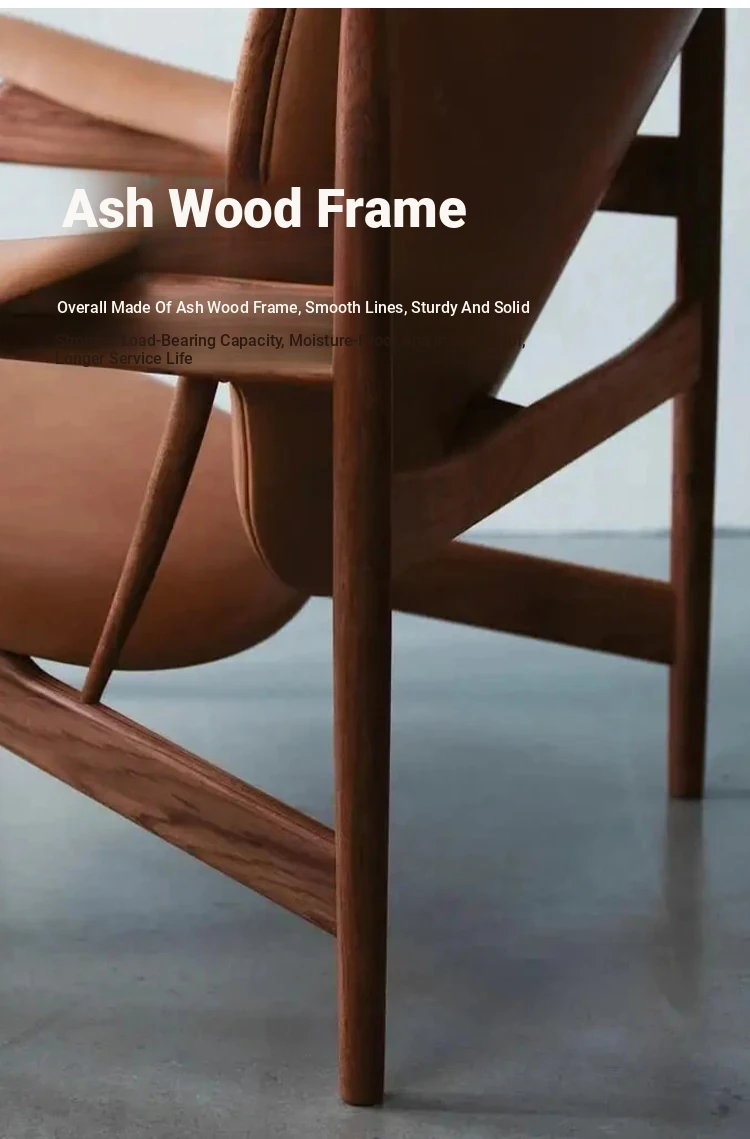 Celebrity-Style Modern Minimalist High-End Solid Walnut Leather Armchair and Chief's Bench - Perfect for Luxury Living Spaces