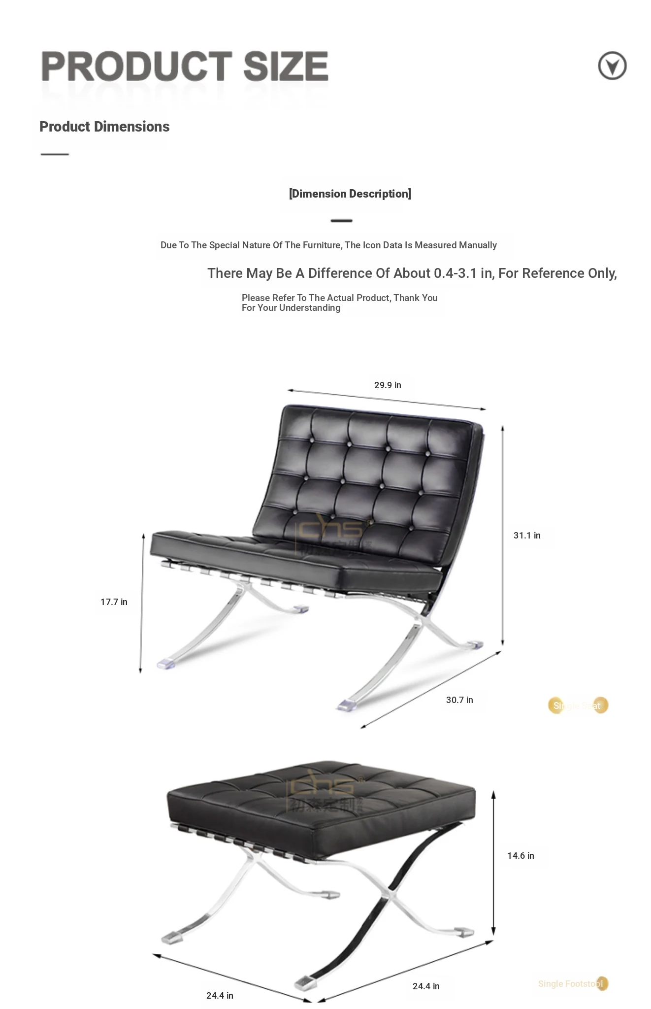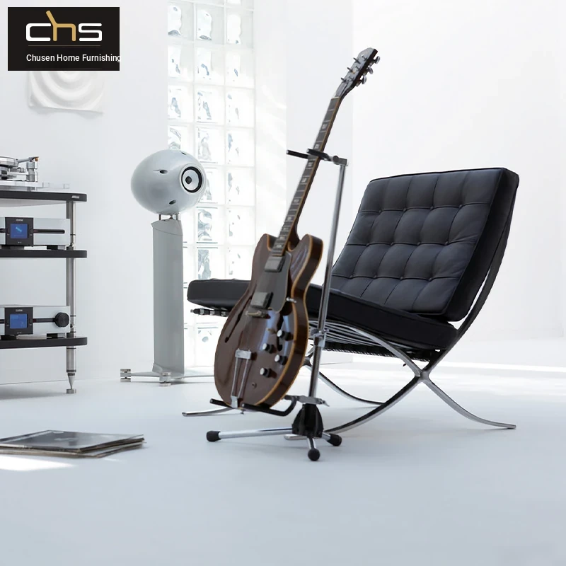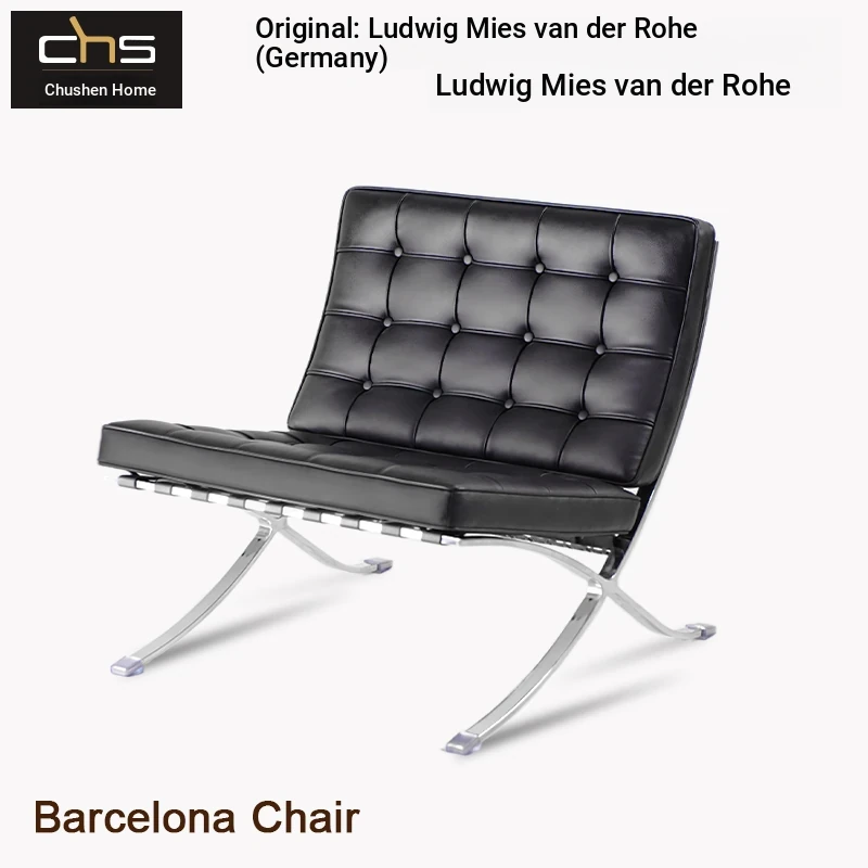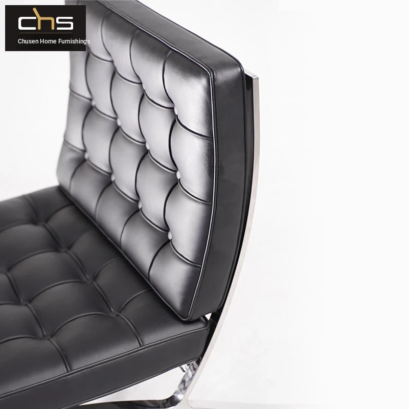 Stainless Steel + Black Full-Made leather [Reprint] (Single Chair])