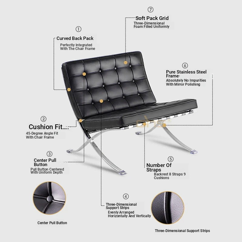 Stainless Steel + Black Full-Made leather [Original Version 1:1 Reprint] ([Single Chair])