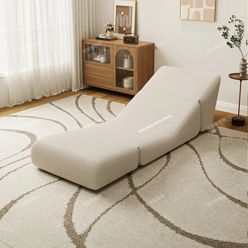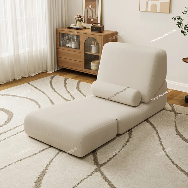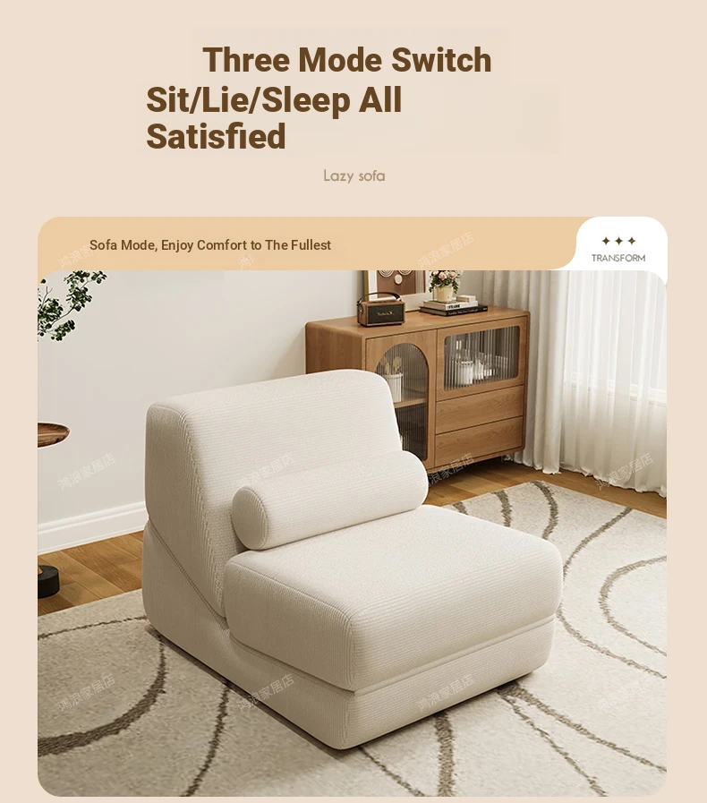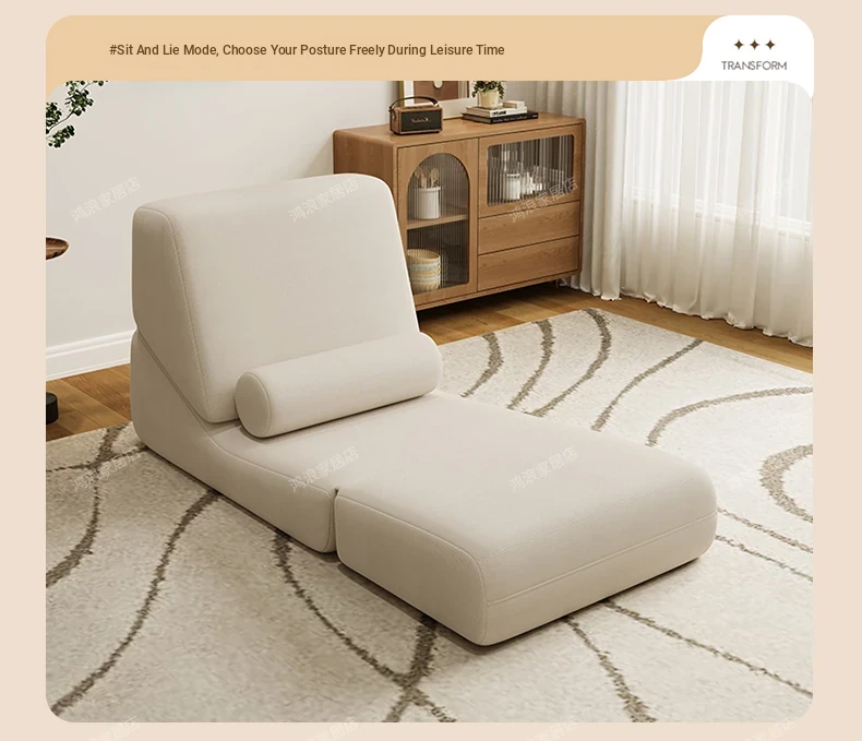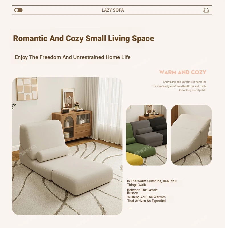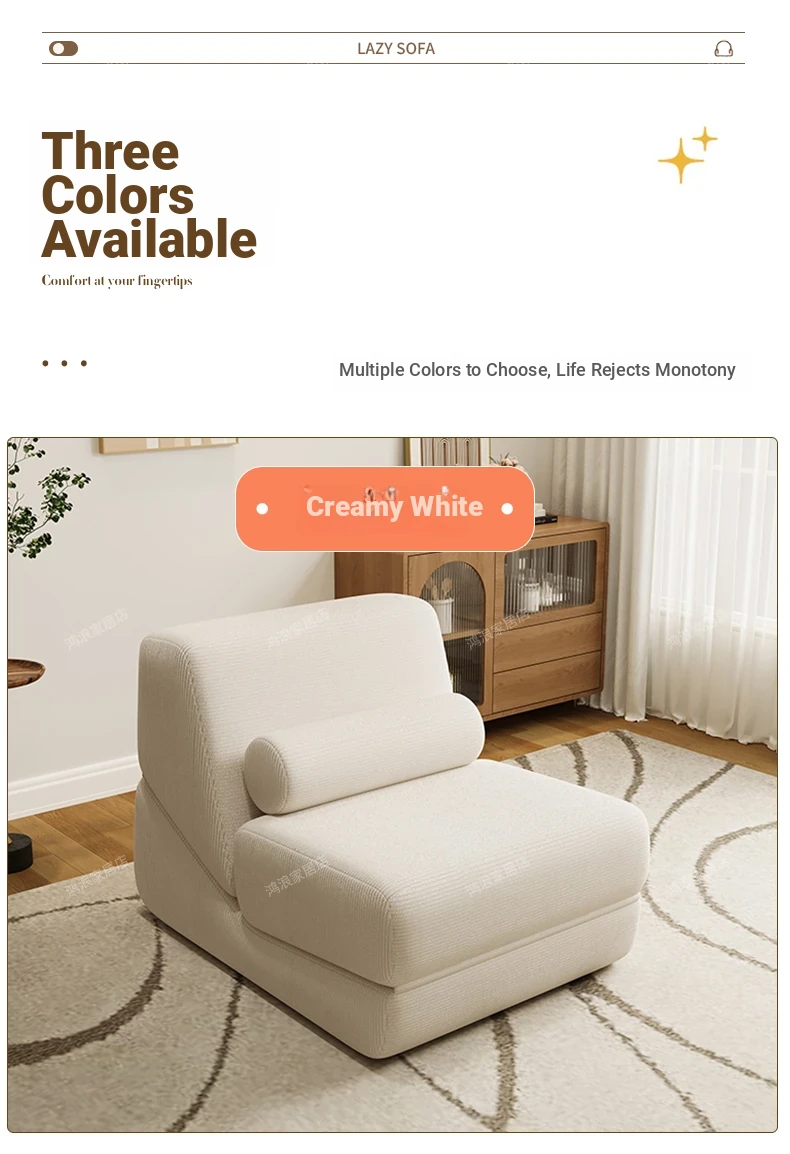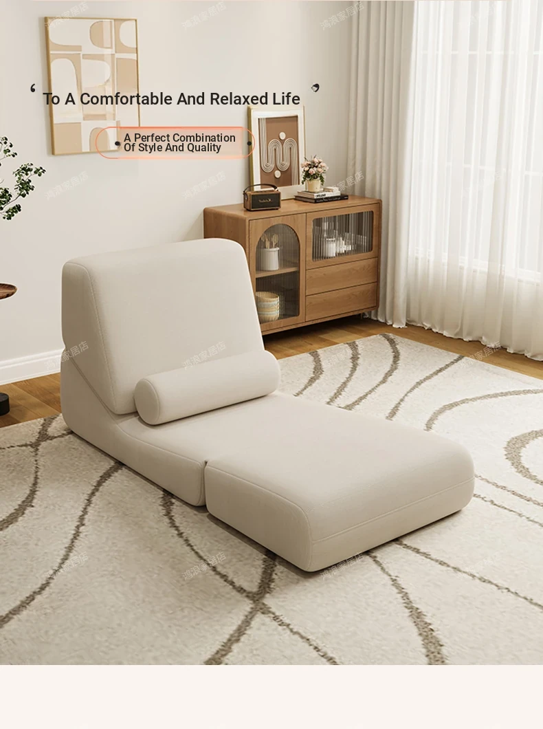 Creamy Lazy Sofa - Multi-functional, Reclining and Sleeping Couch for Small Spaces, Perfect for Office, Living Room, and Balcony Relaxation.