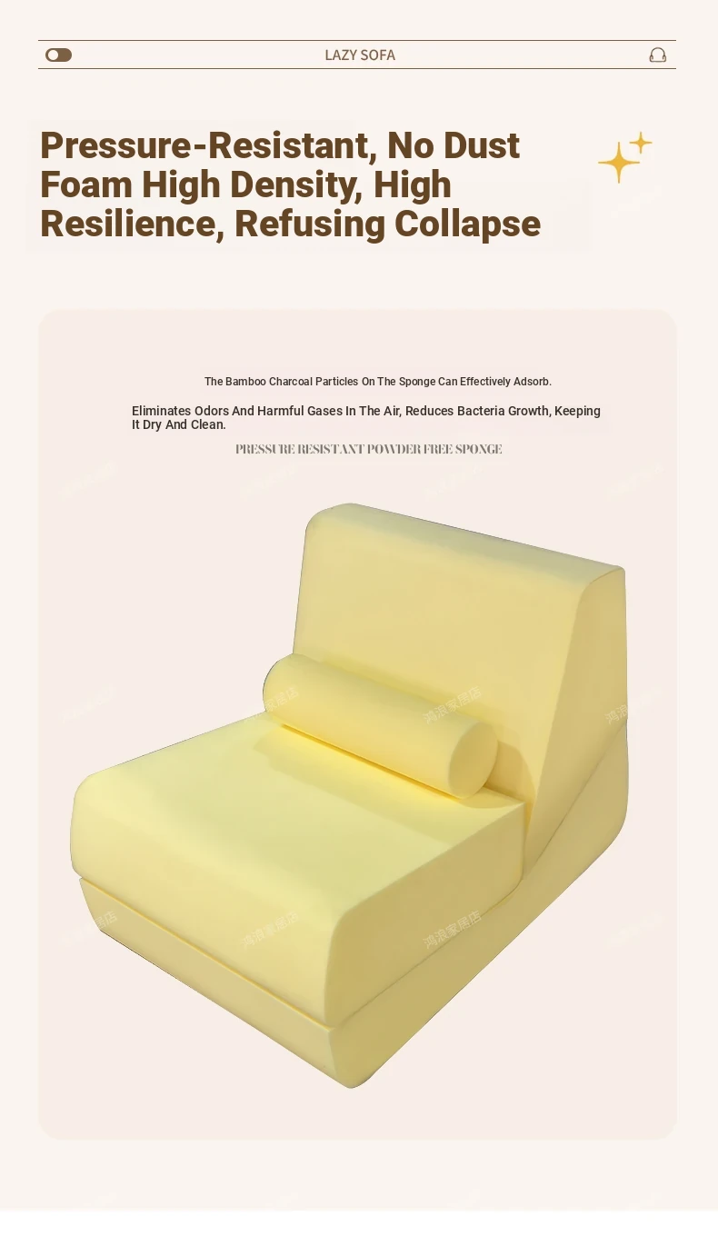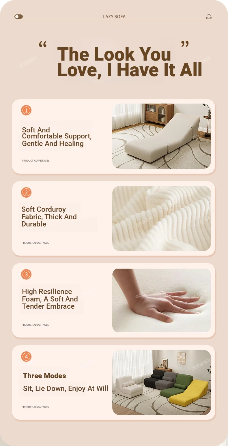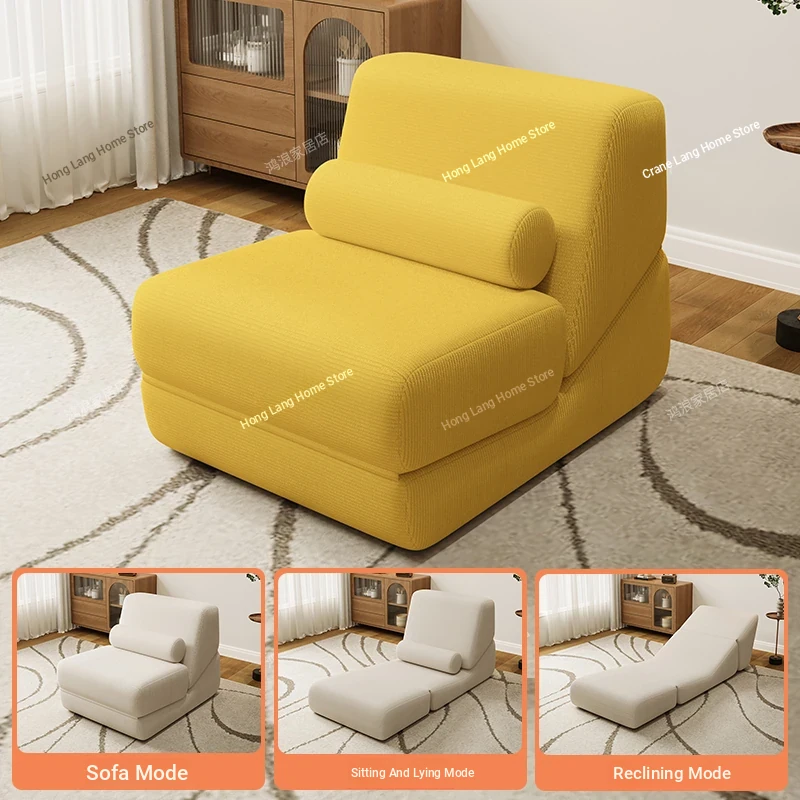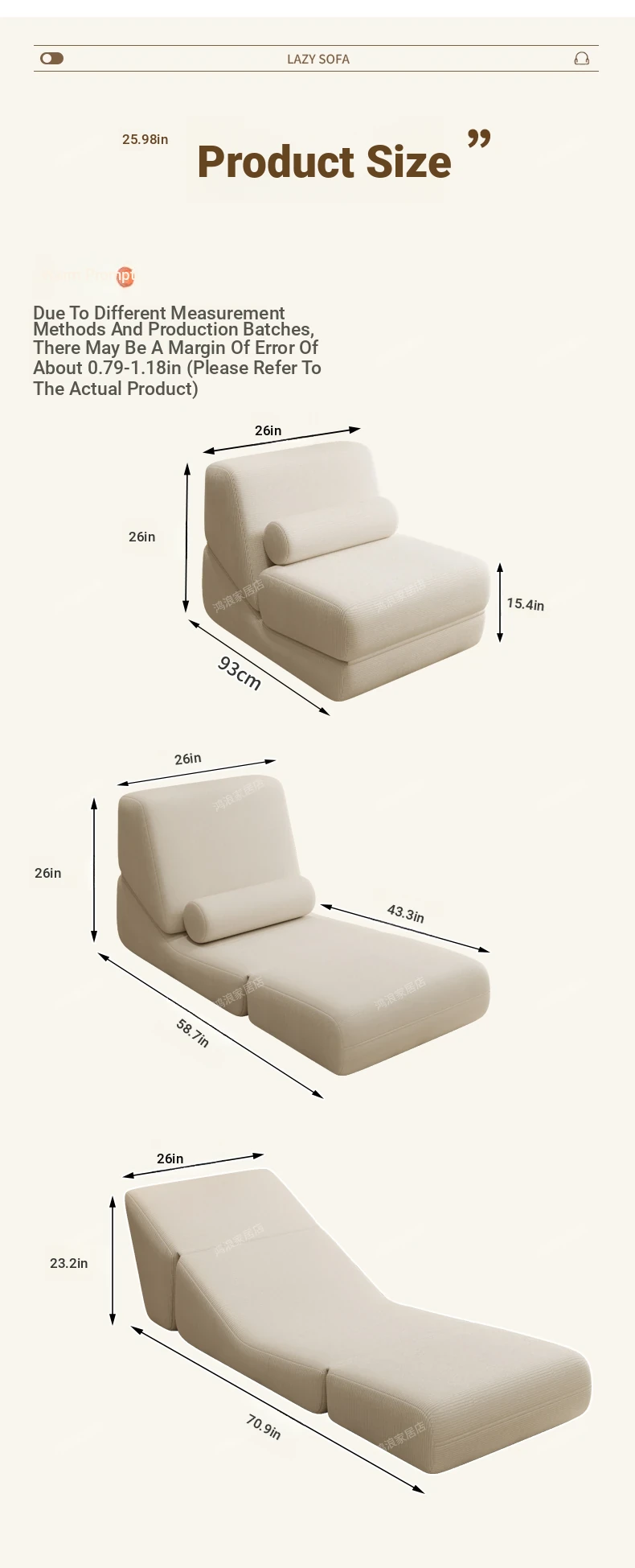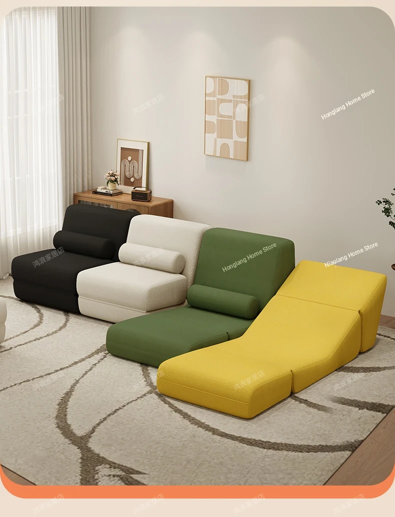 Creamy Lazy Sofa - Multi-functional, Reclining and Sleeping Couch for Small Spaces, Perfect for Office, Living Room, and Balcony Relaxation.