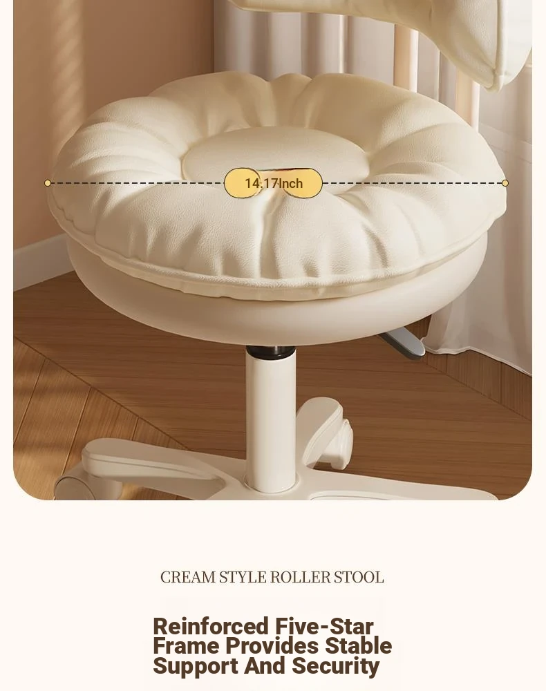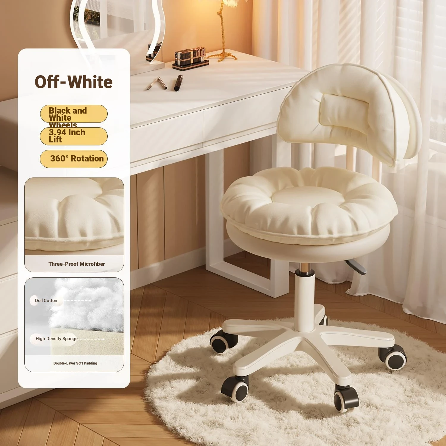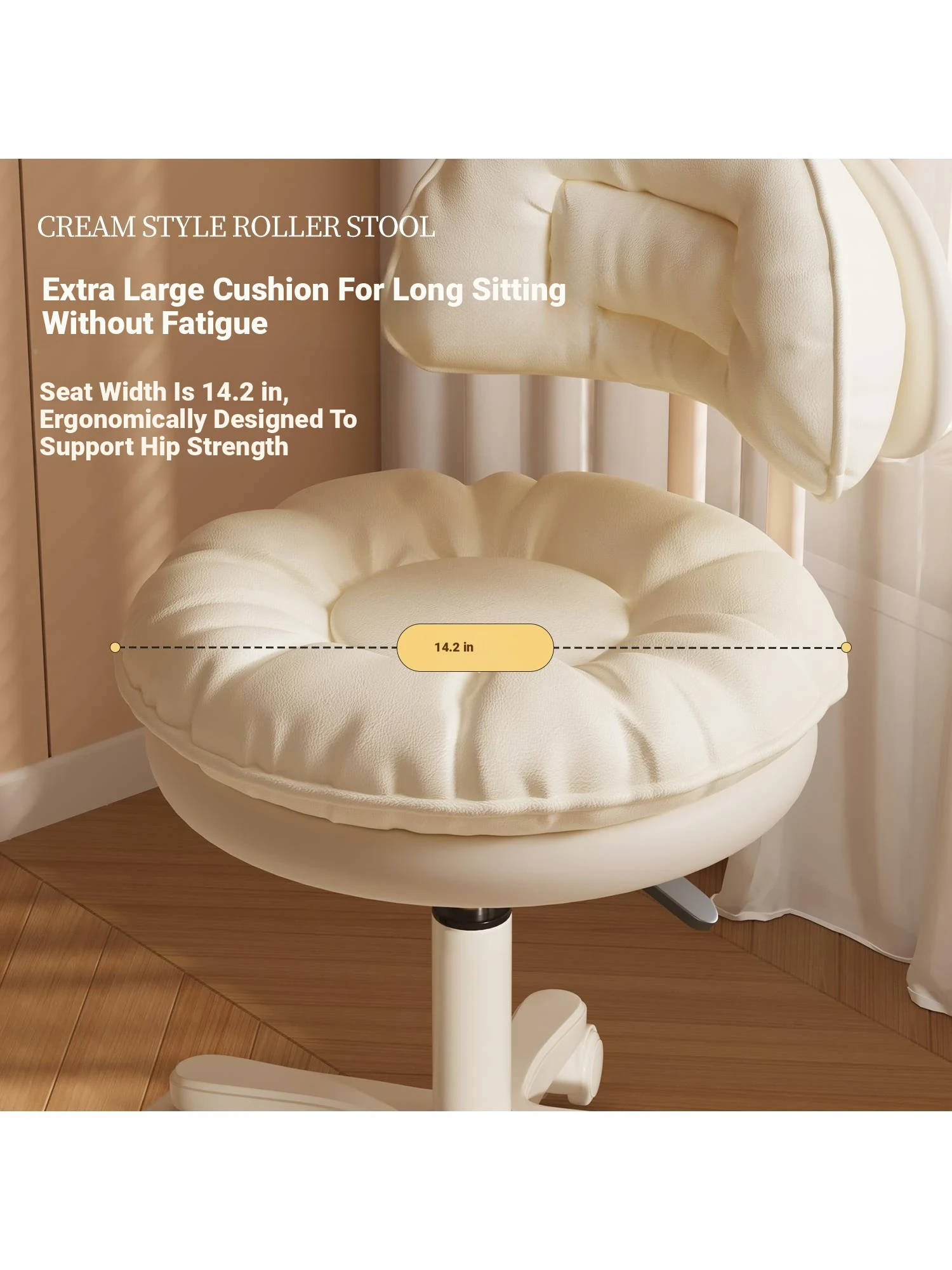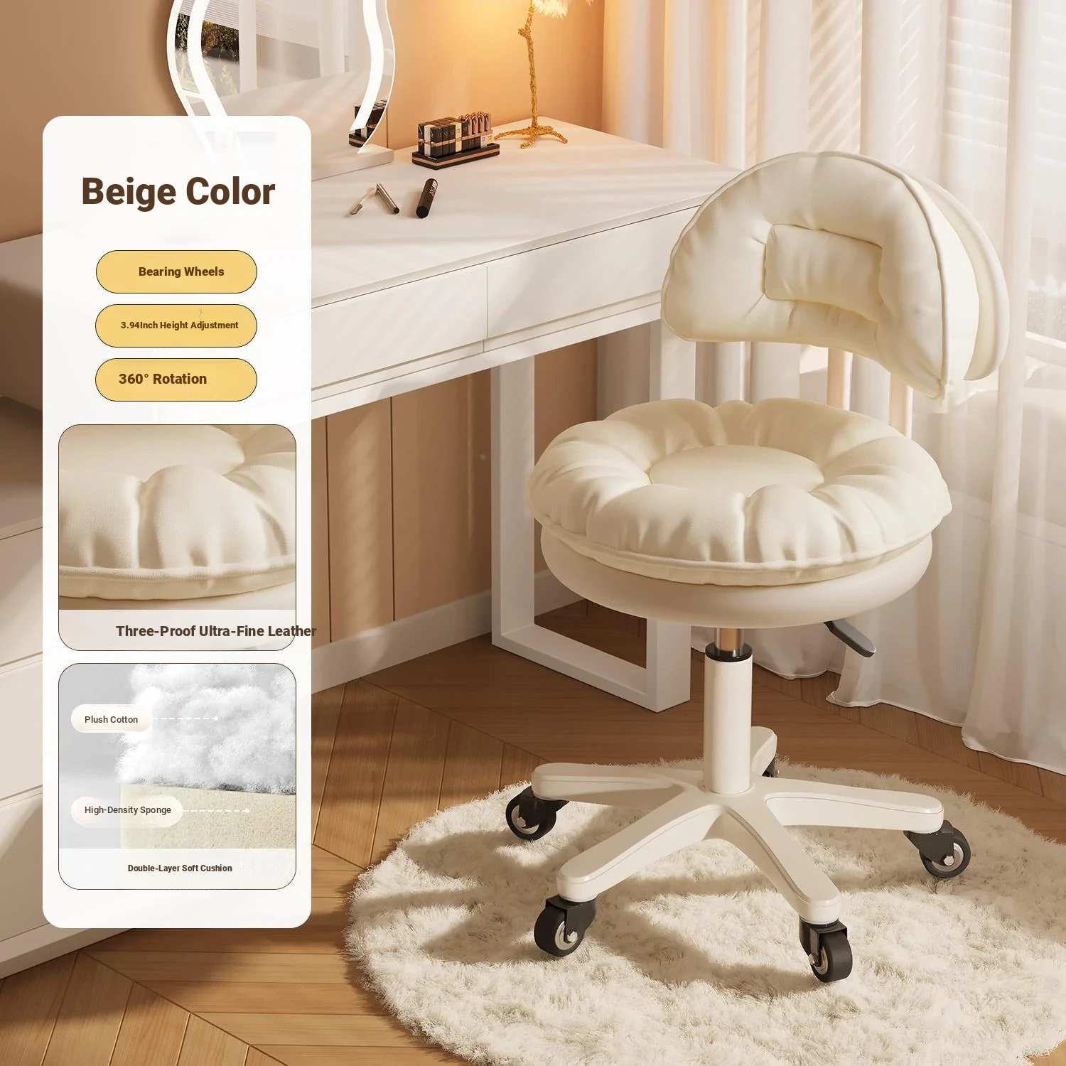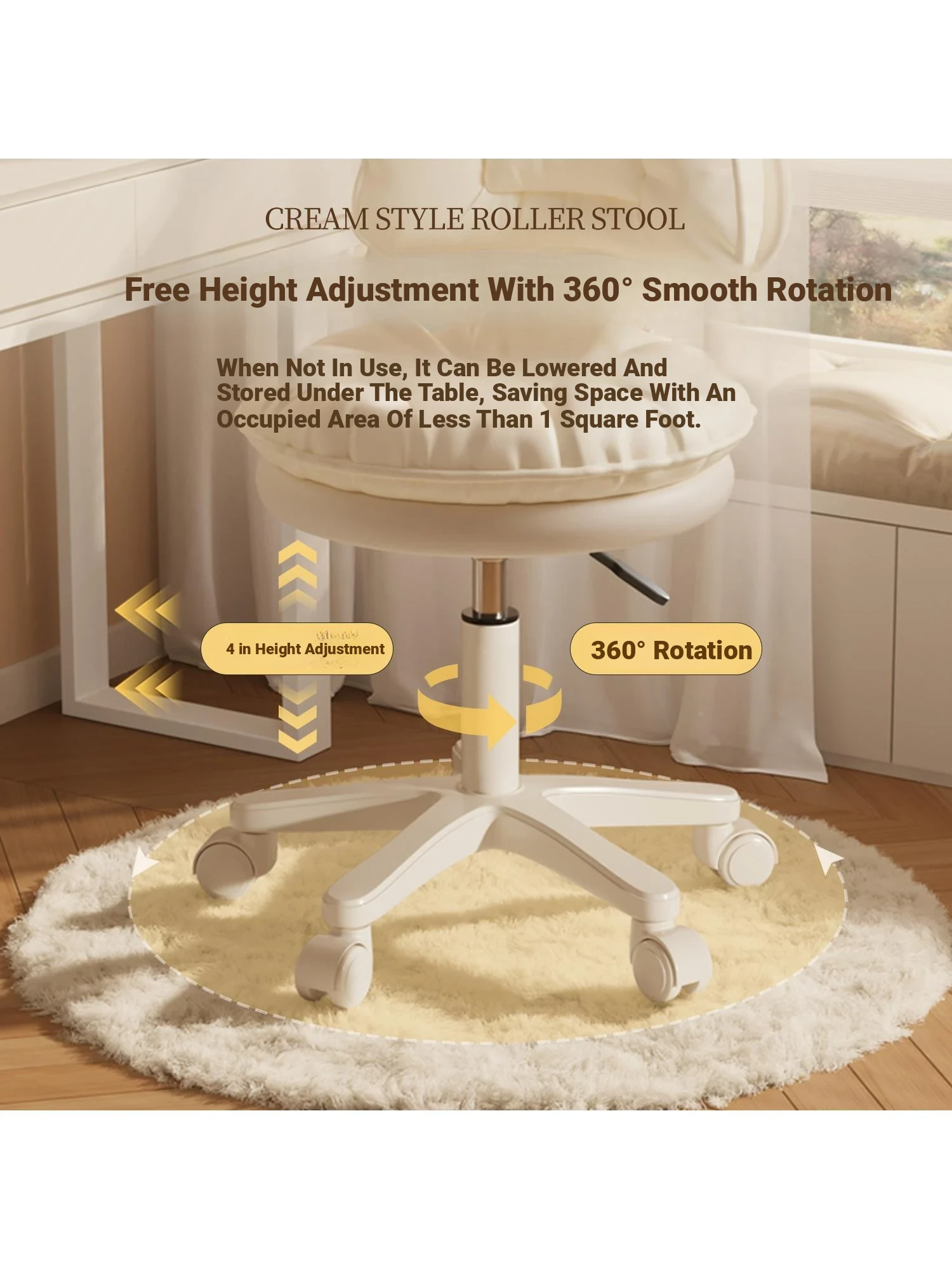 Creamy Makeup Chair - Stylish Adjustable Computer Chair for Dressing Table, Ideal for Girls’ Bedrooms, Home Use, and Manicure – Ergonomic Swivel Stool for Ultimate Comfort