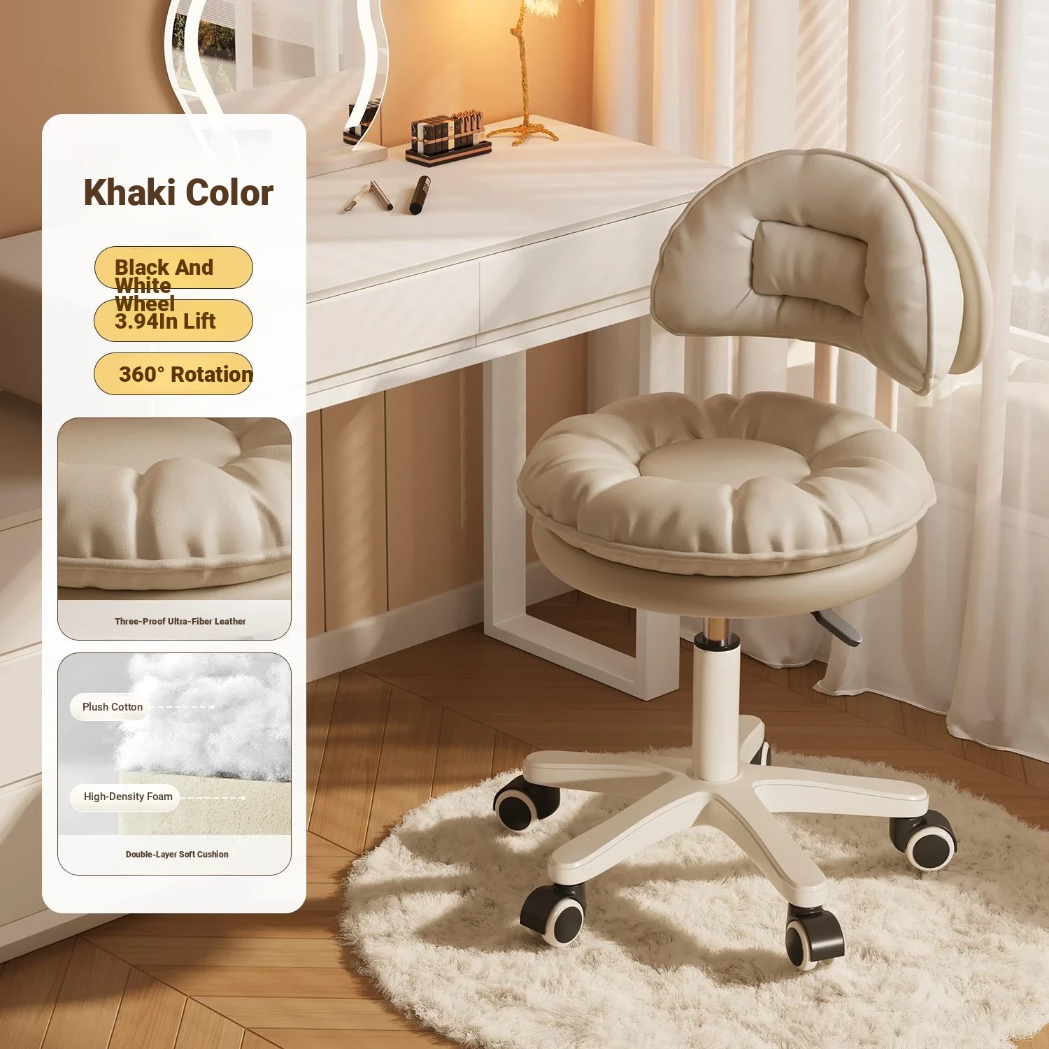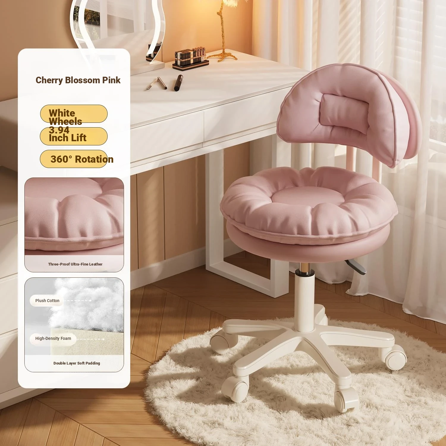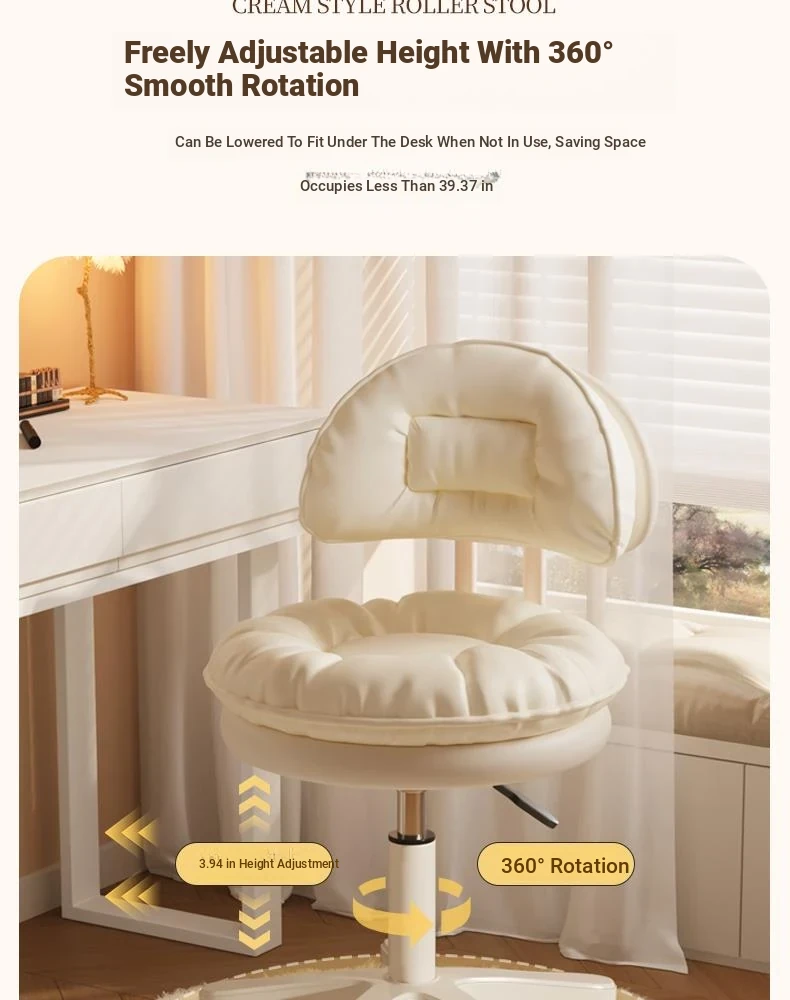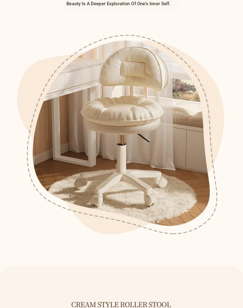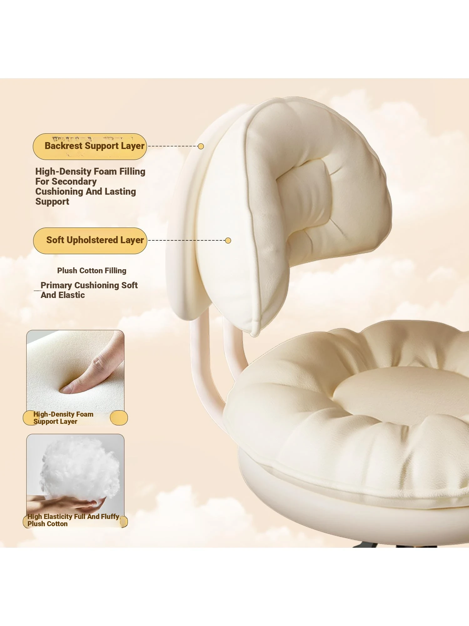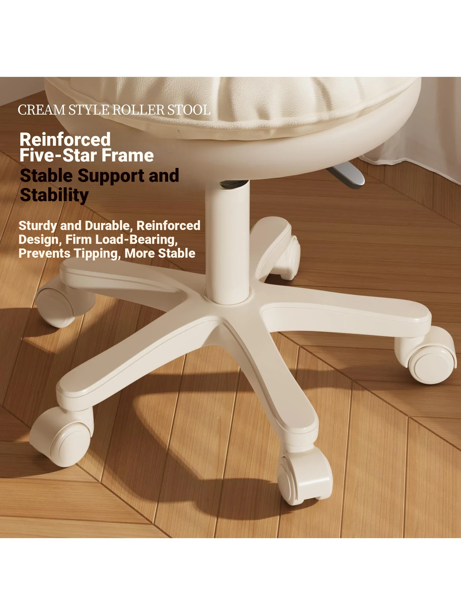 Creamy Makeup Chair - Stylish Adjustable Computer Chair for Dressing Table, Ideal for Girls’ Bedrooms, Home Use, and Manicure – Ergonomic Swivel Stool for Ultimate Comfort