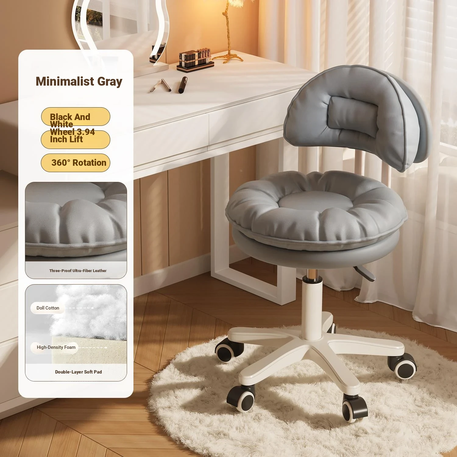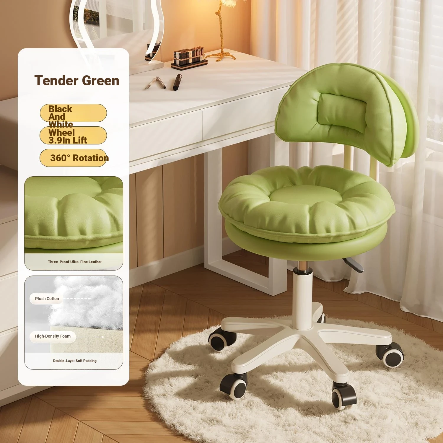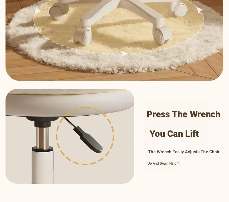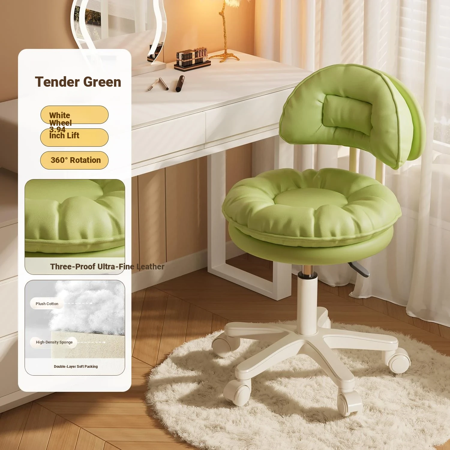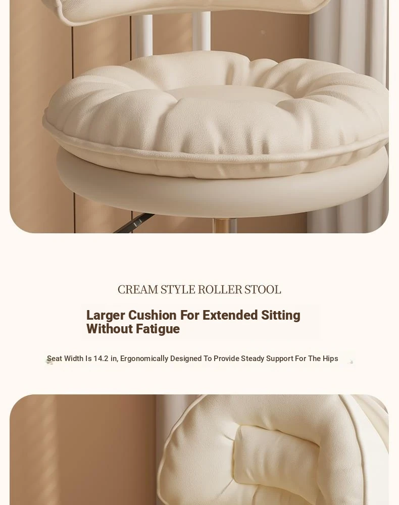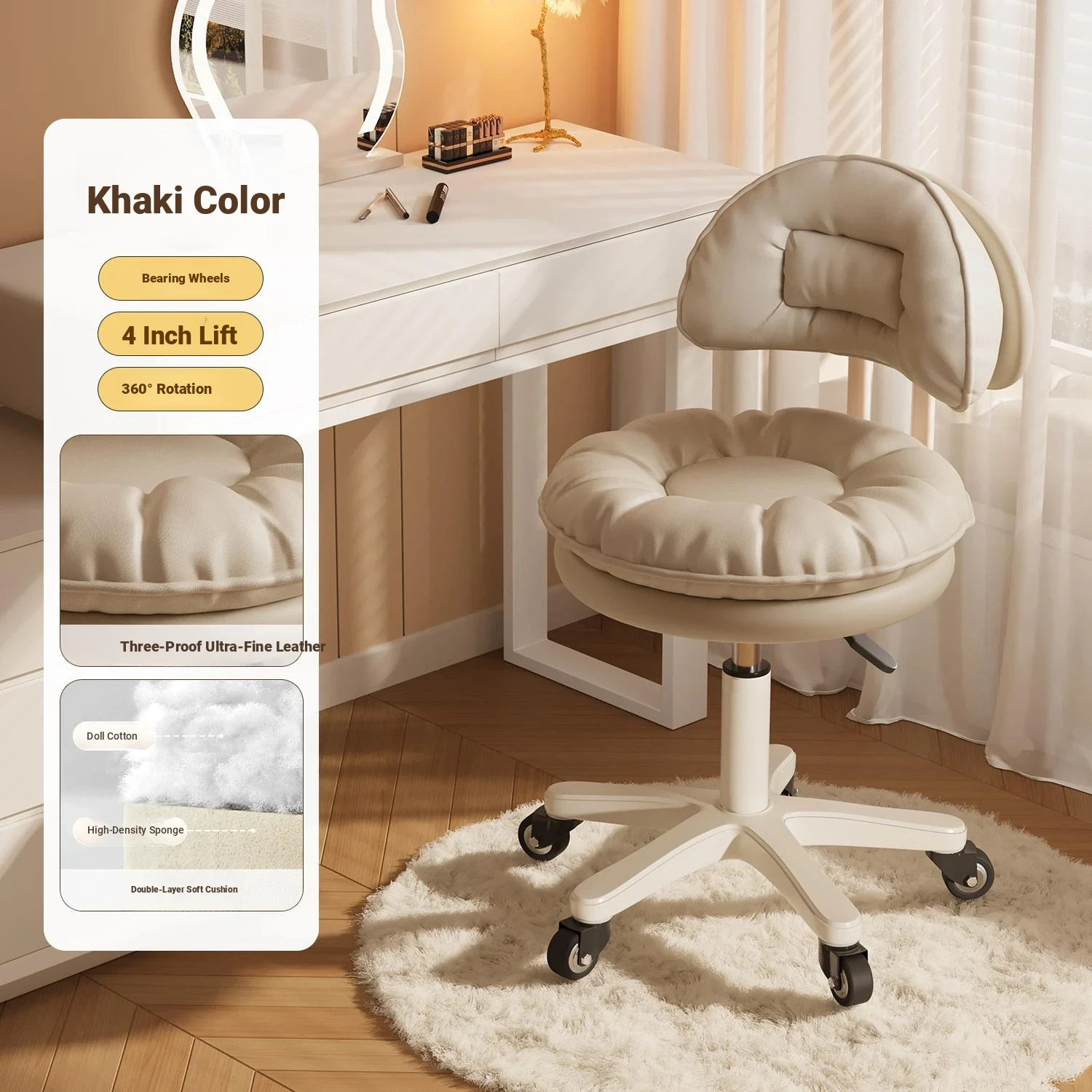 Creamy Makeup Chair - Stylish Adjustable Computer Chair for Dressing Table, Ideal for Girls’ Bedrooms, Home Use, and Manicure – Ergonomic Swivel Stool for Ultimate Comfort
