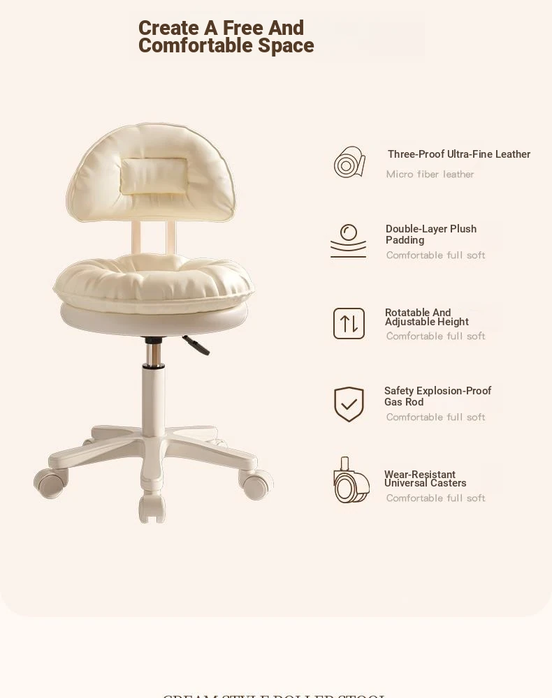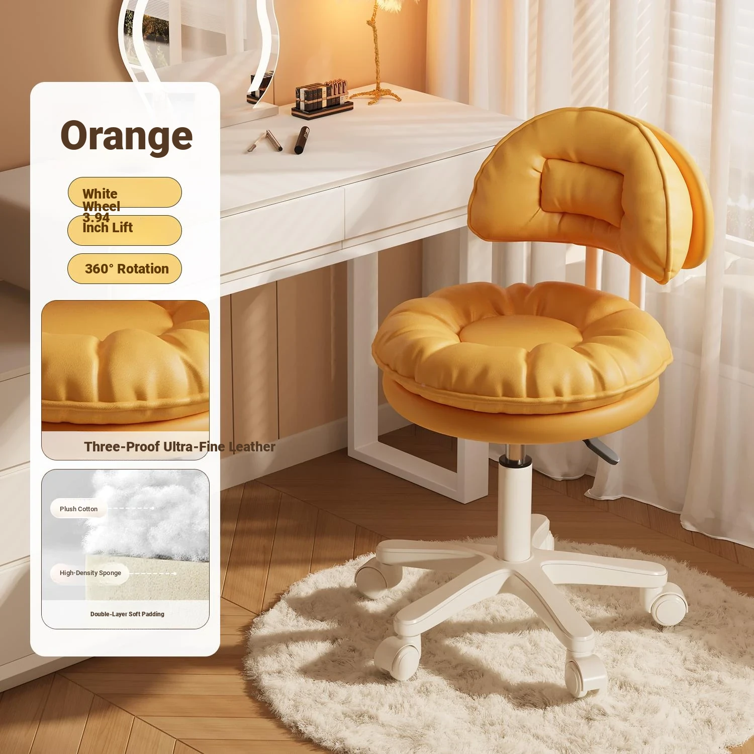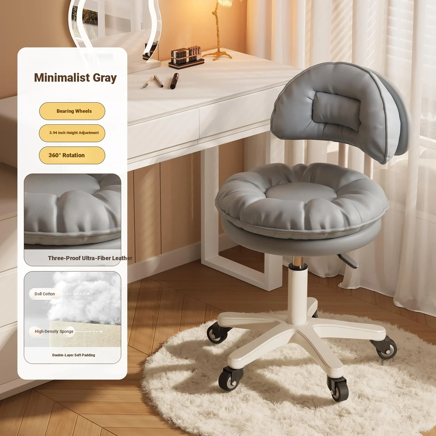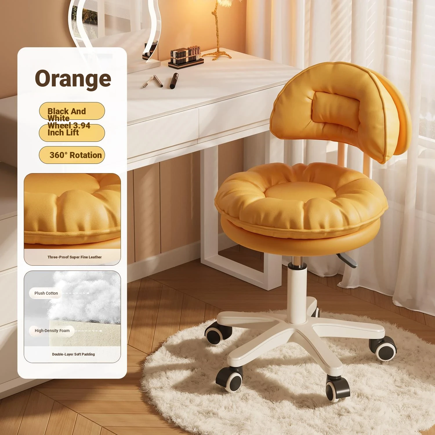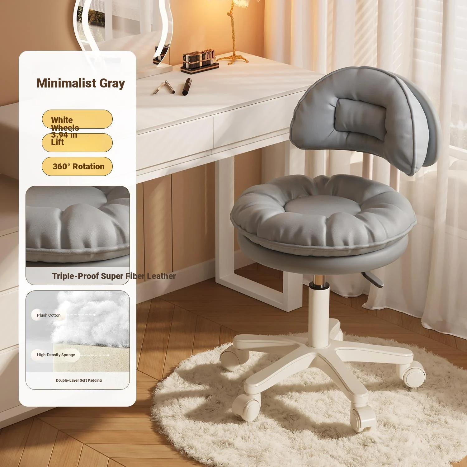 Creamy Makeup Chair - Stylish Adjustable Computer Chair for Dressing Table, Ideal for Girls’ Bedrooms, Home Use, and Manicure – Ergonomic Swivel Stool for Ultimate Comfort